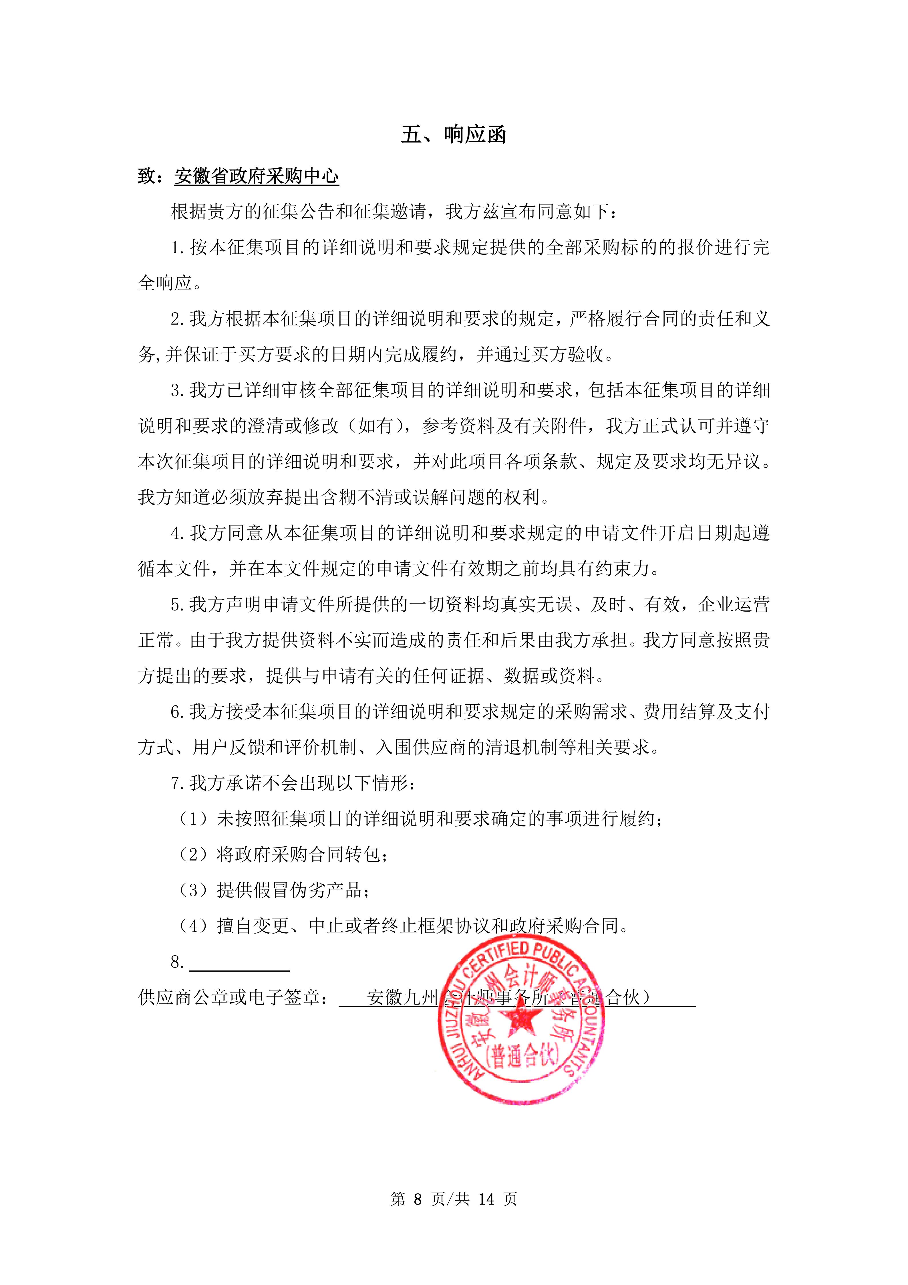 *********年度安徽省省直单位绩效评价开放式框架协议 安徽九州会计师事务所(普通合伙)*********年度安徽省省直单位绩效评价开放式框架协议 营业执照等证明文件:*.营业执照等证明文件.***