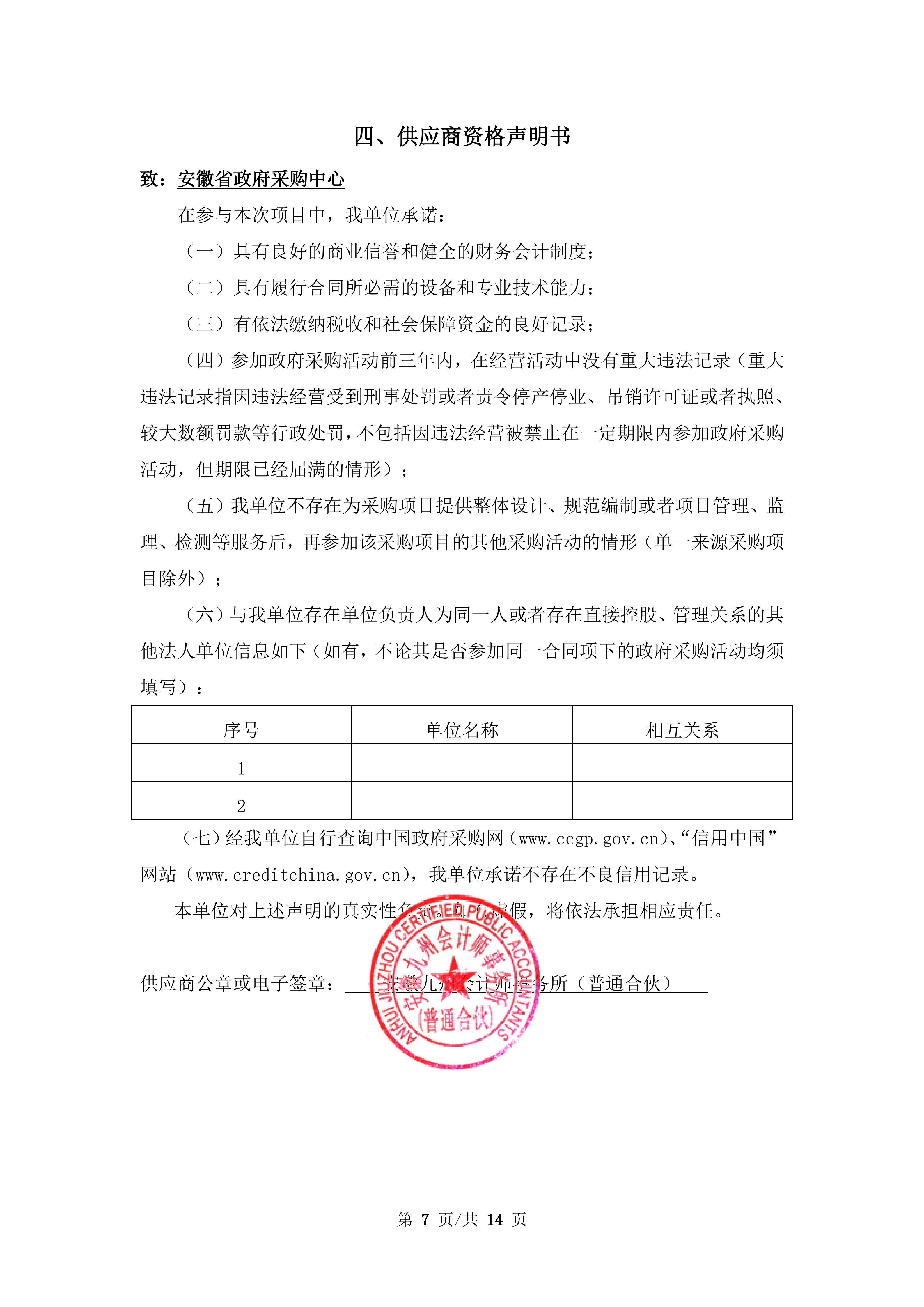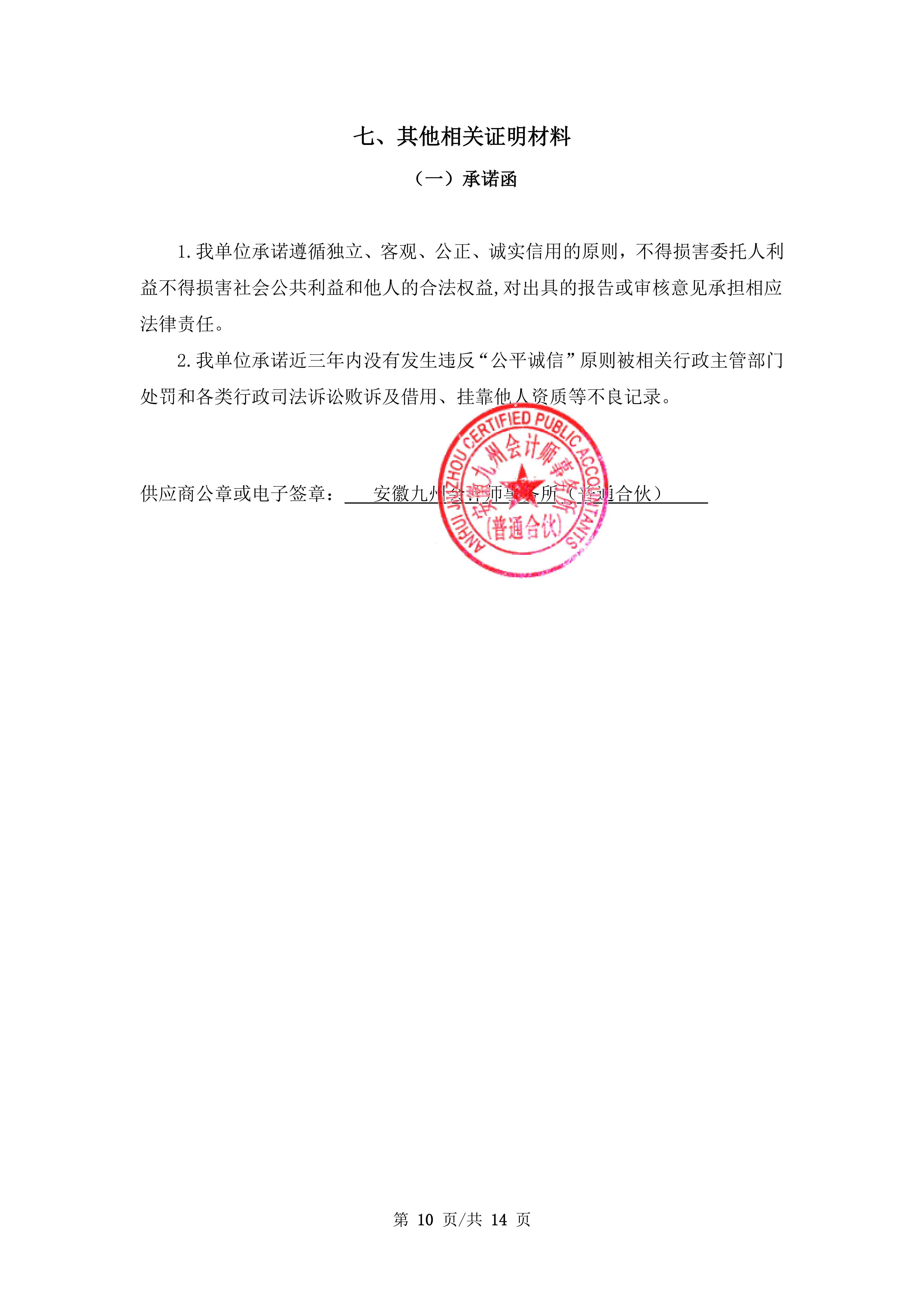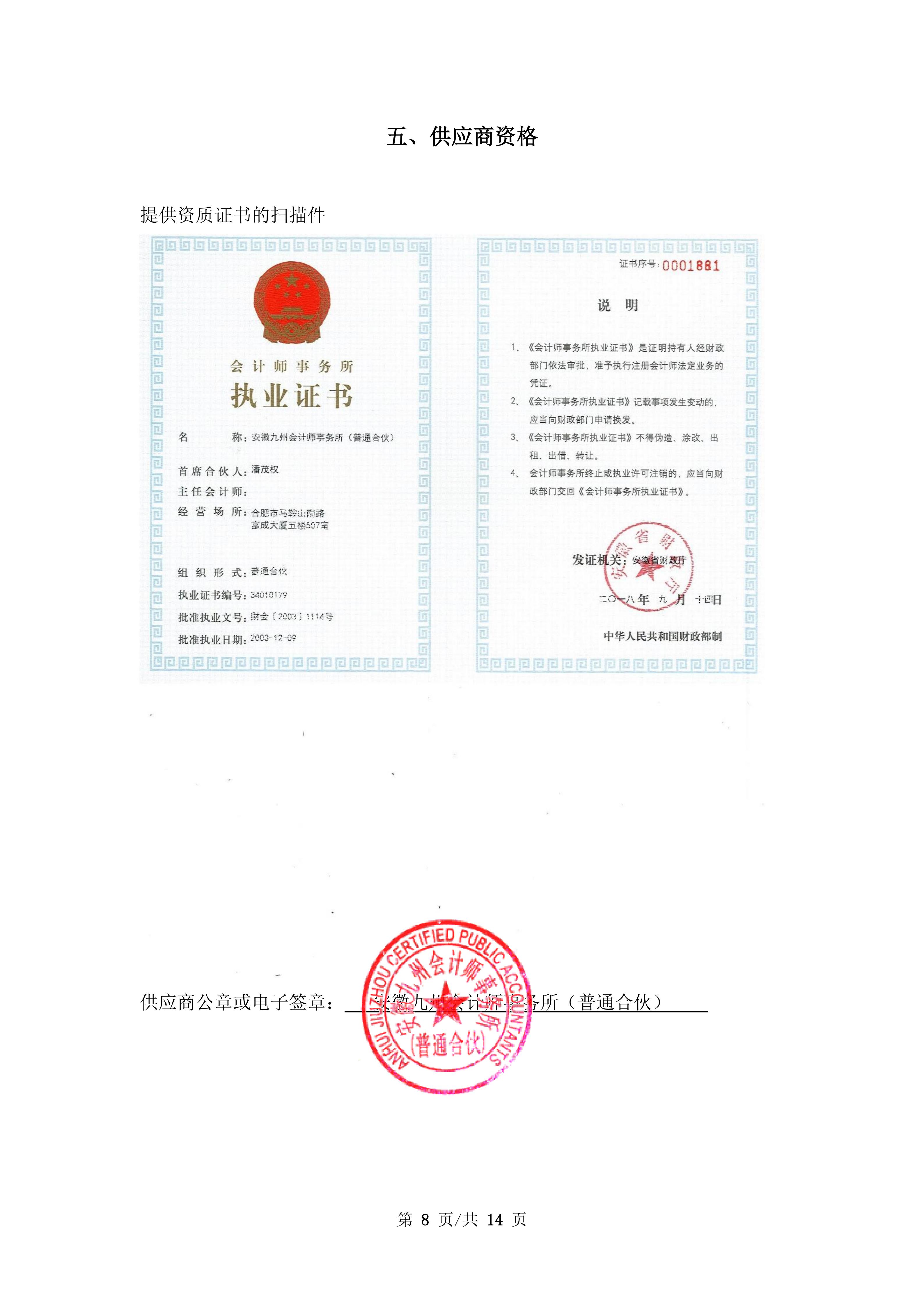 供应商名称:安徽九州会计师事务所(普通合伙)