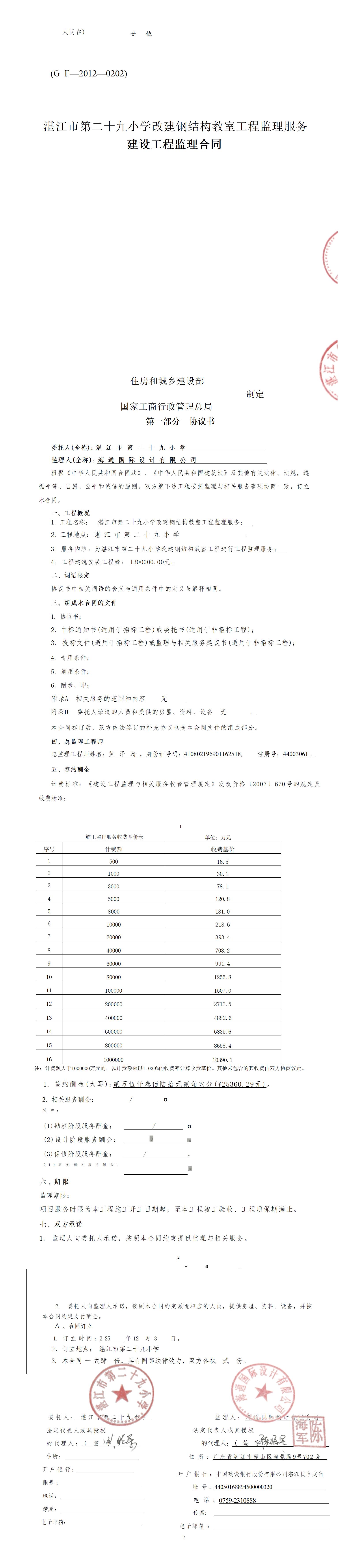 湛江市第二十九小学改建钢结构教室工程监理服务合同公开
