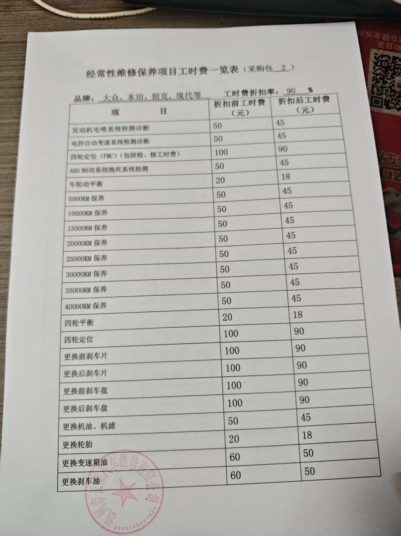 经常性维修保养项目工时费览表:********************************.***