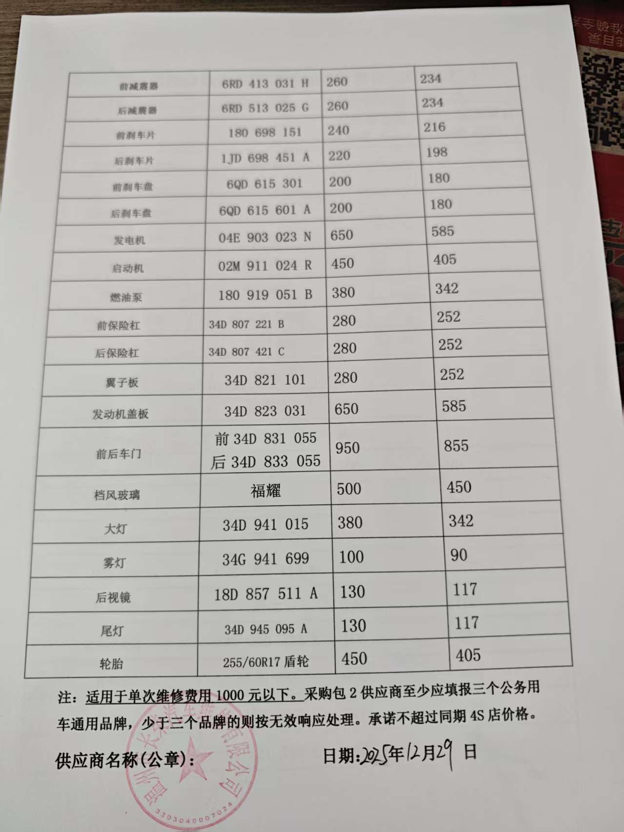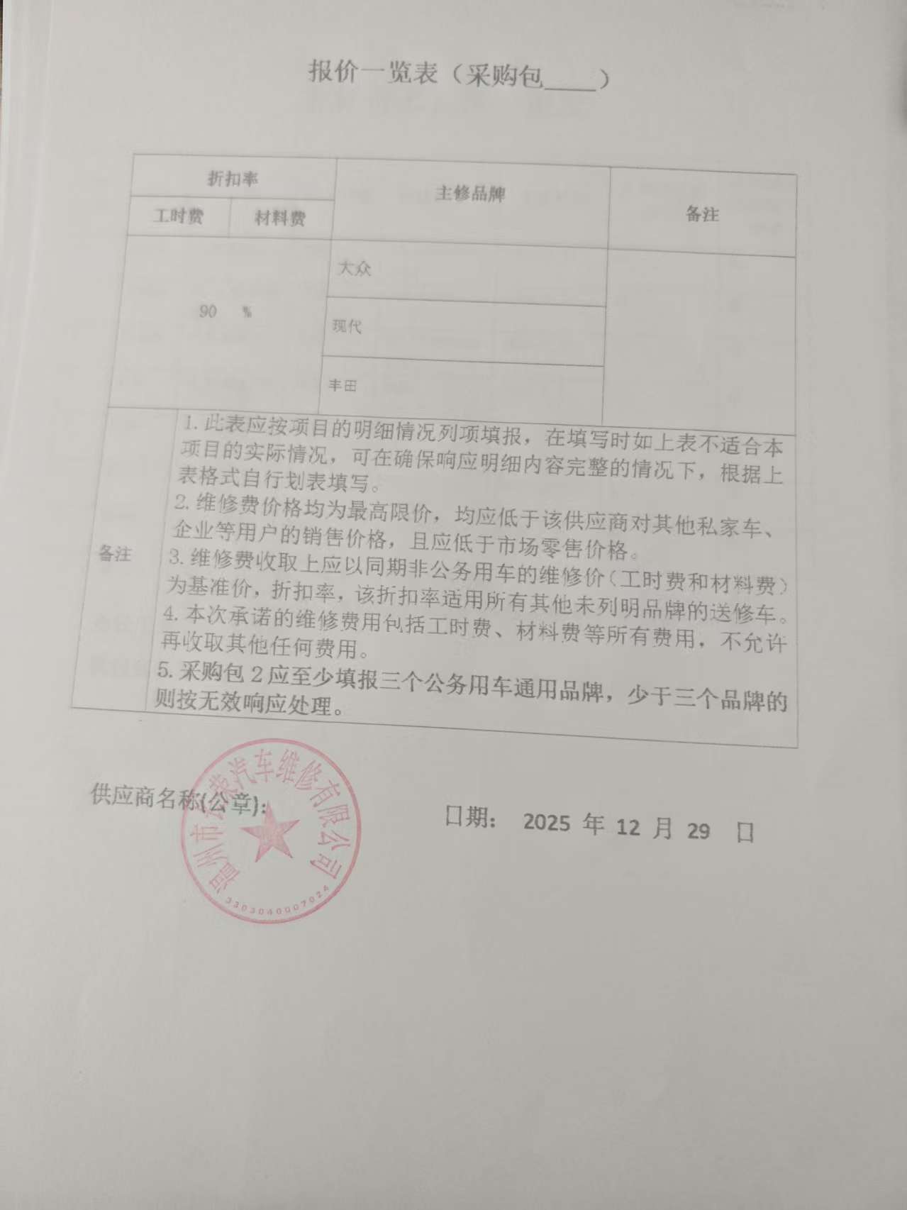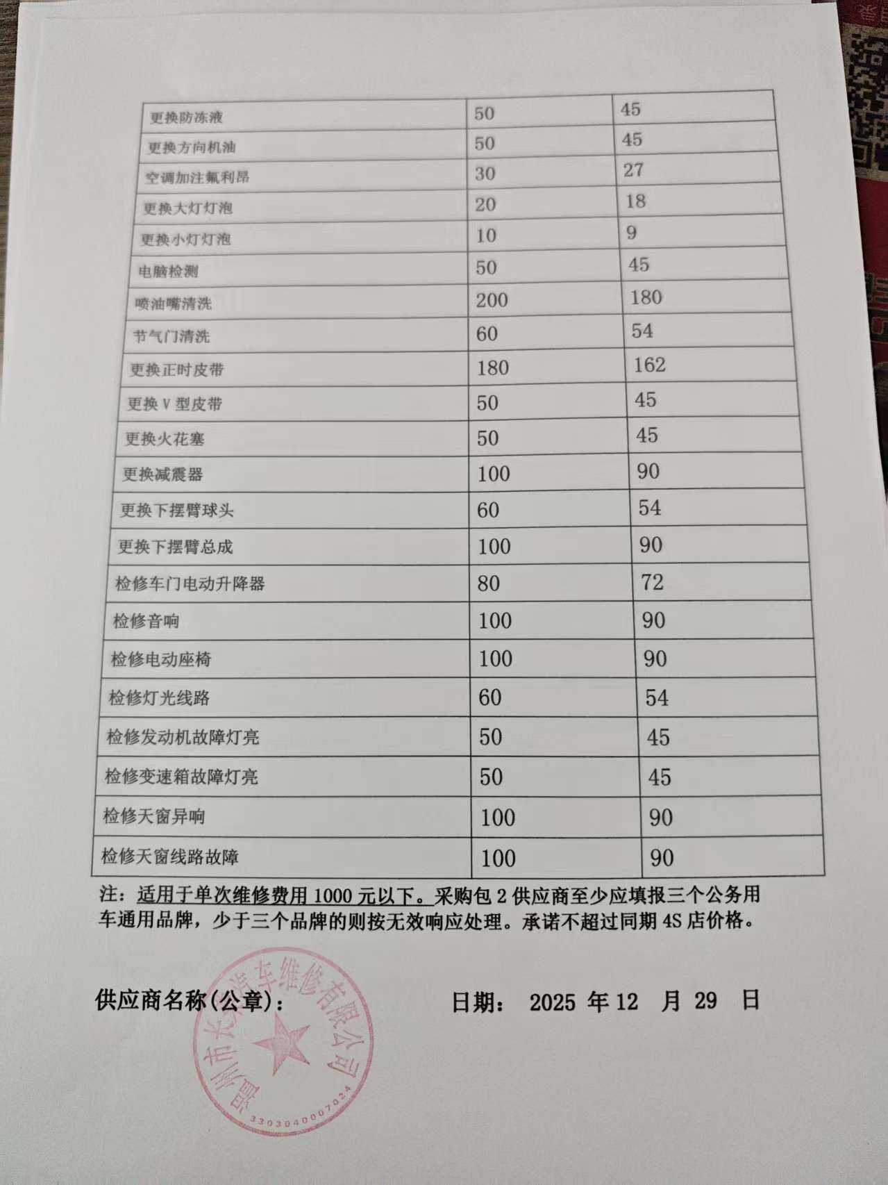 、二类维修供应商(综合修理类)