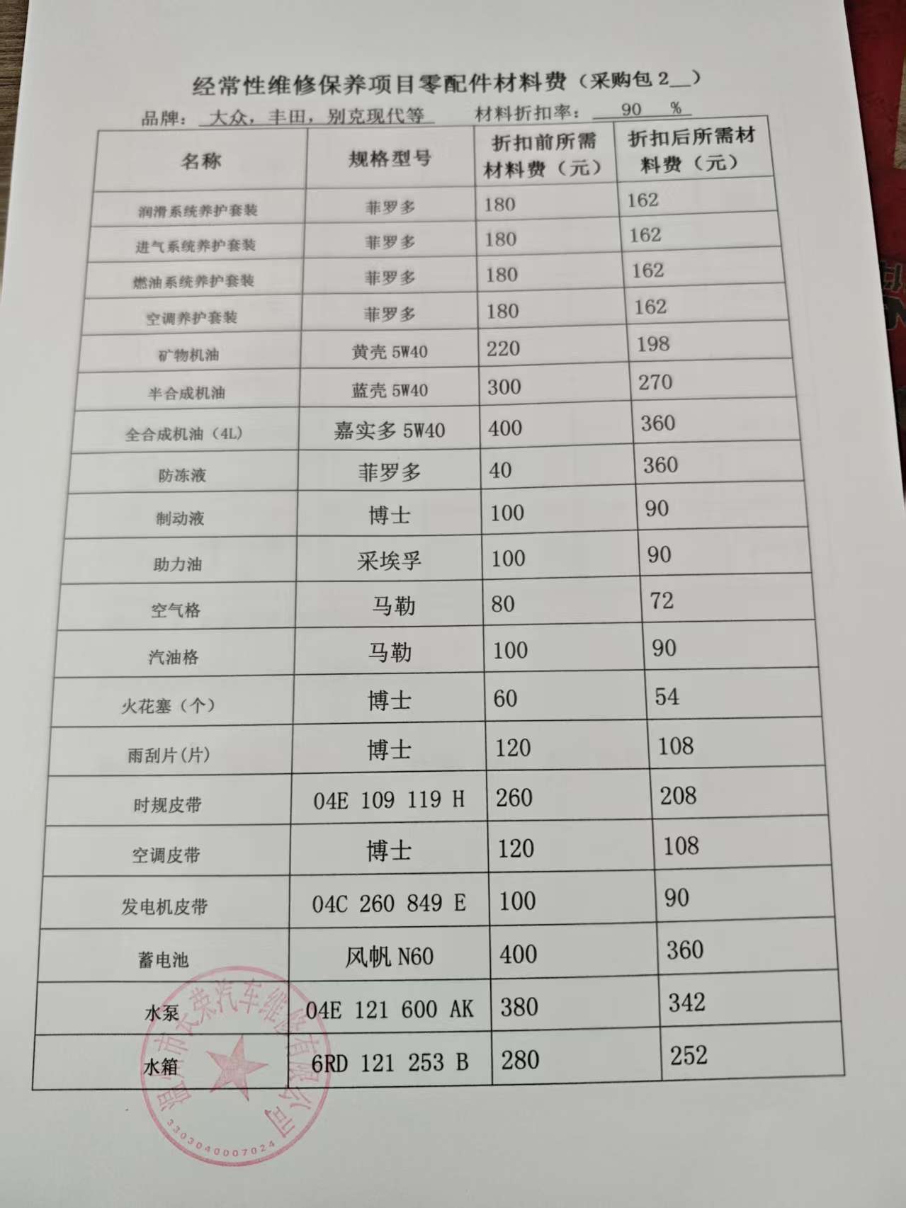 经常性维修保养项目零配件材料费:材料*.***