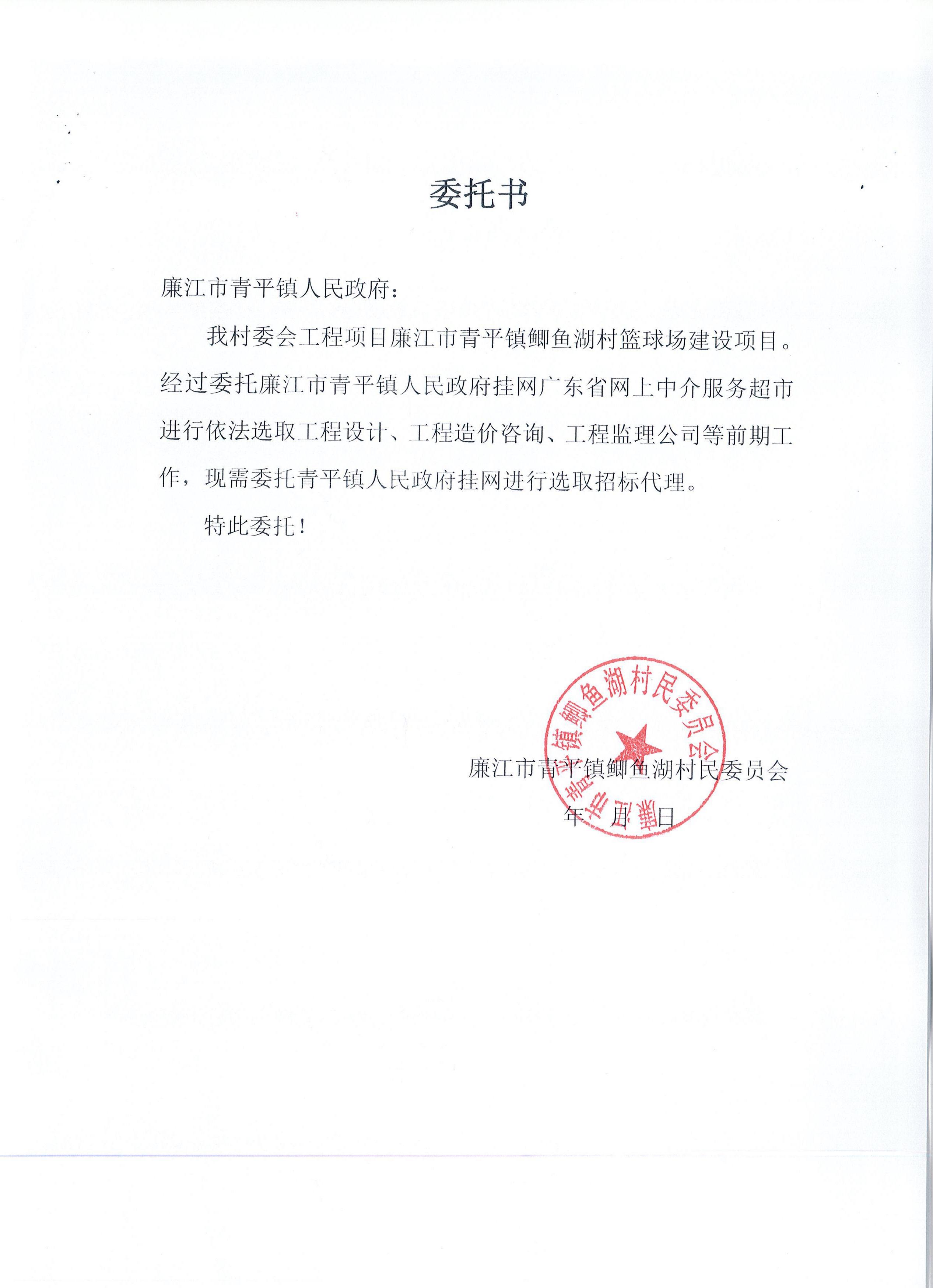 廉江市青平镇鲫鱼湖村篮球场建设项目工程招标代理