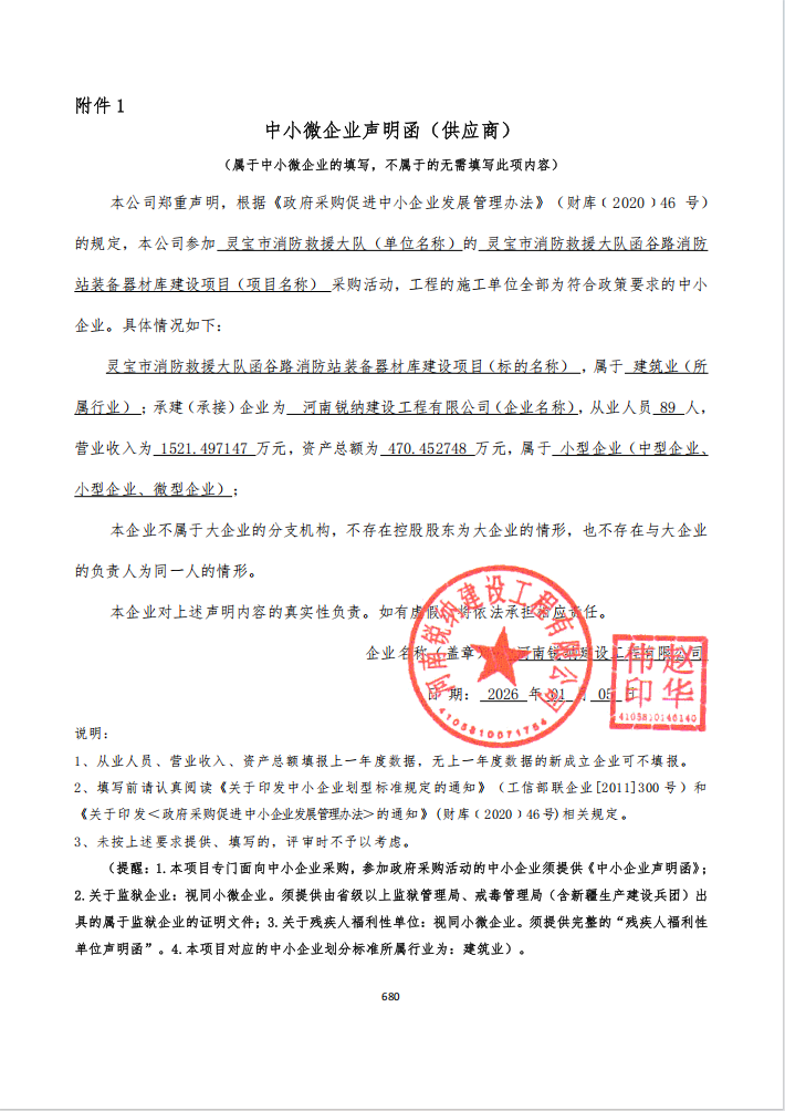 灵宝市消防救援大队函谷路消防站装备器材库建设项目*成交公告