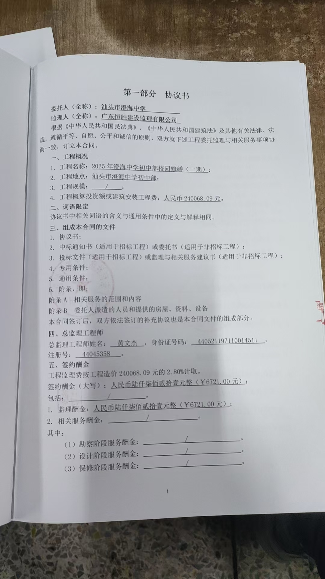 2025年澄海中学初中部校园修缮(一期)合同公开