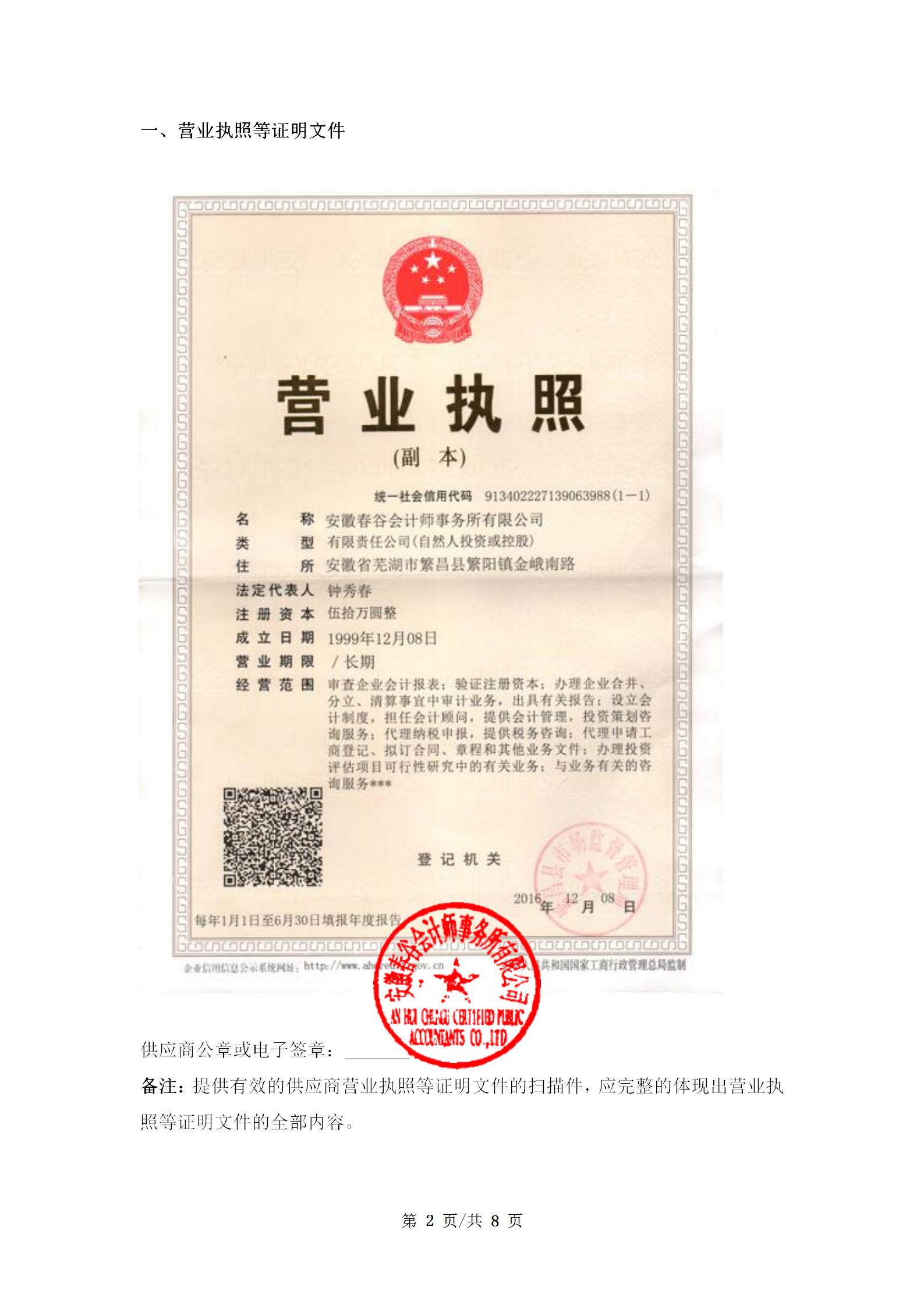 安徽春谷会计师事务所有限公司*********年度安徽省省直单位财务审计开放式框架协议