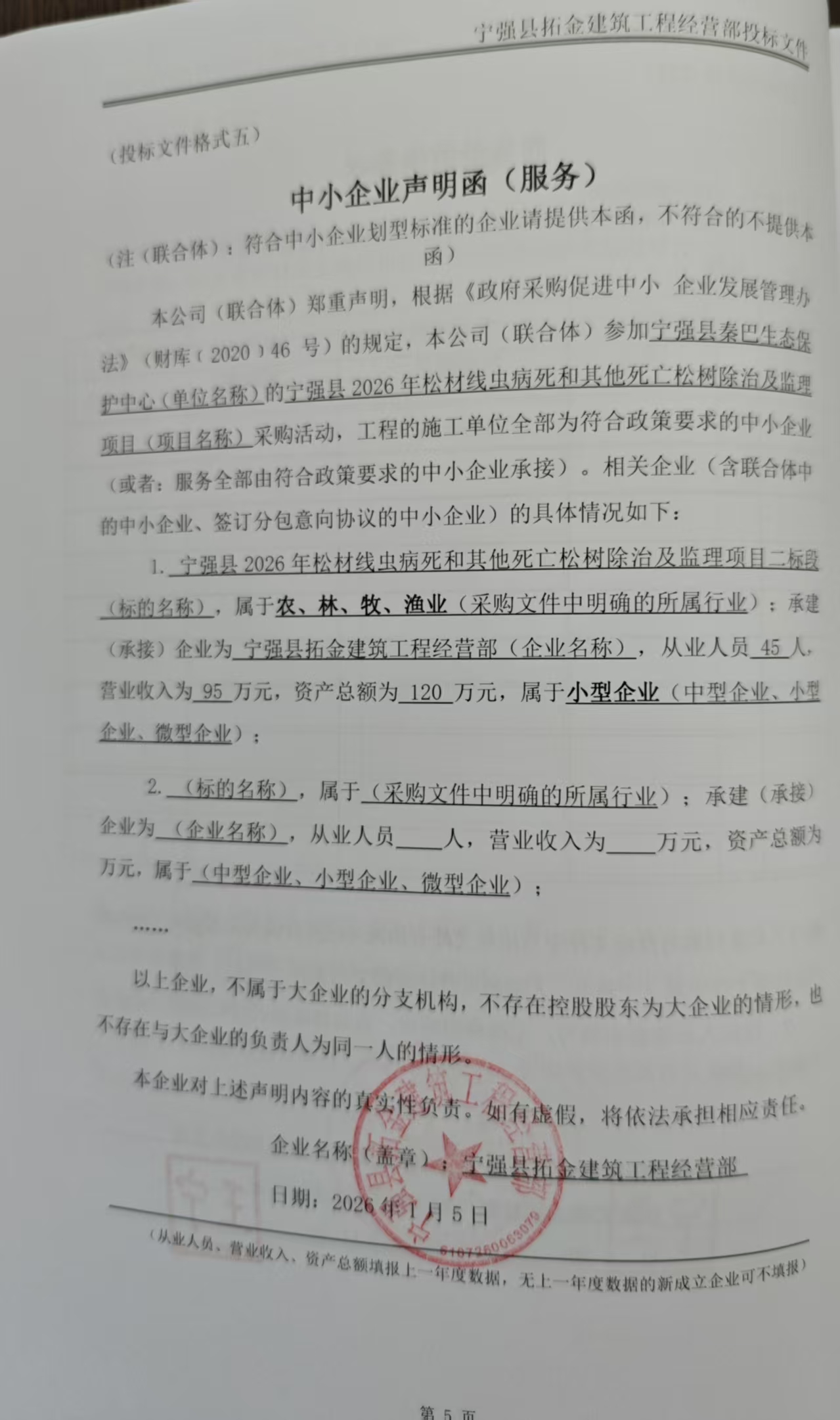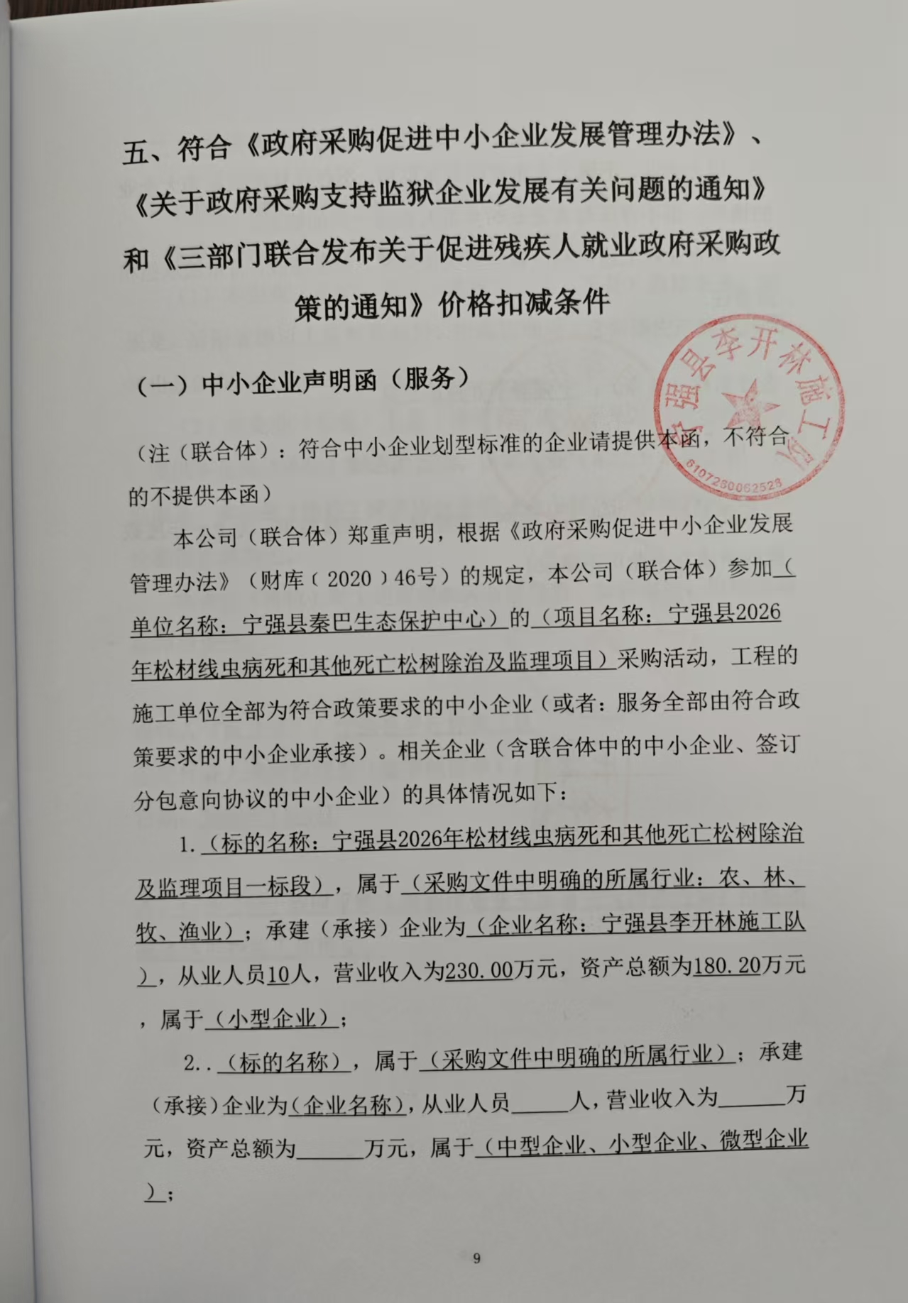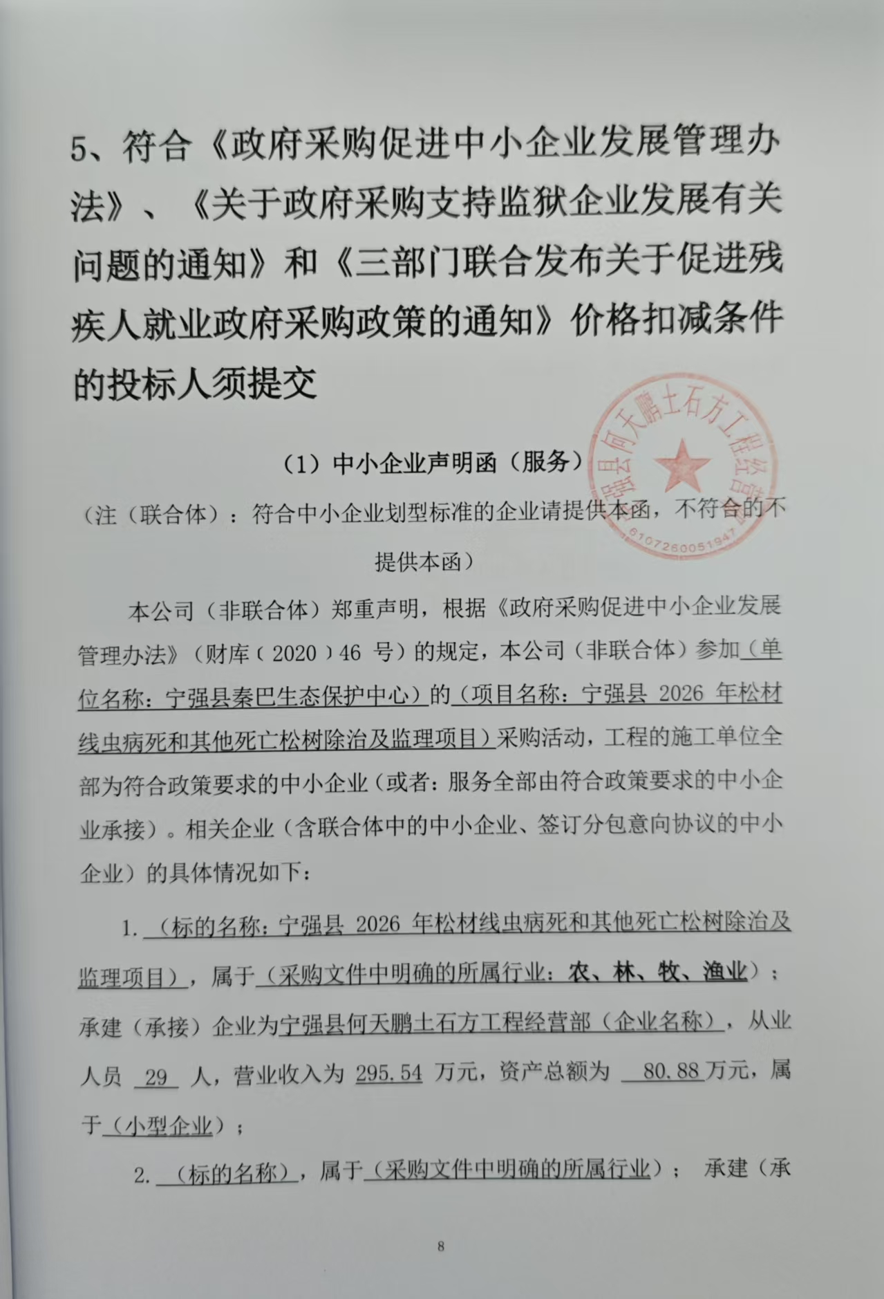 二、项目名称:宁强县****年松材线虫病死和其他死亡松树除治及监理项目