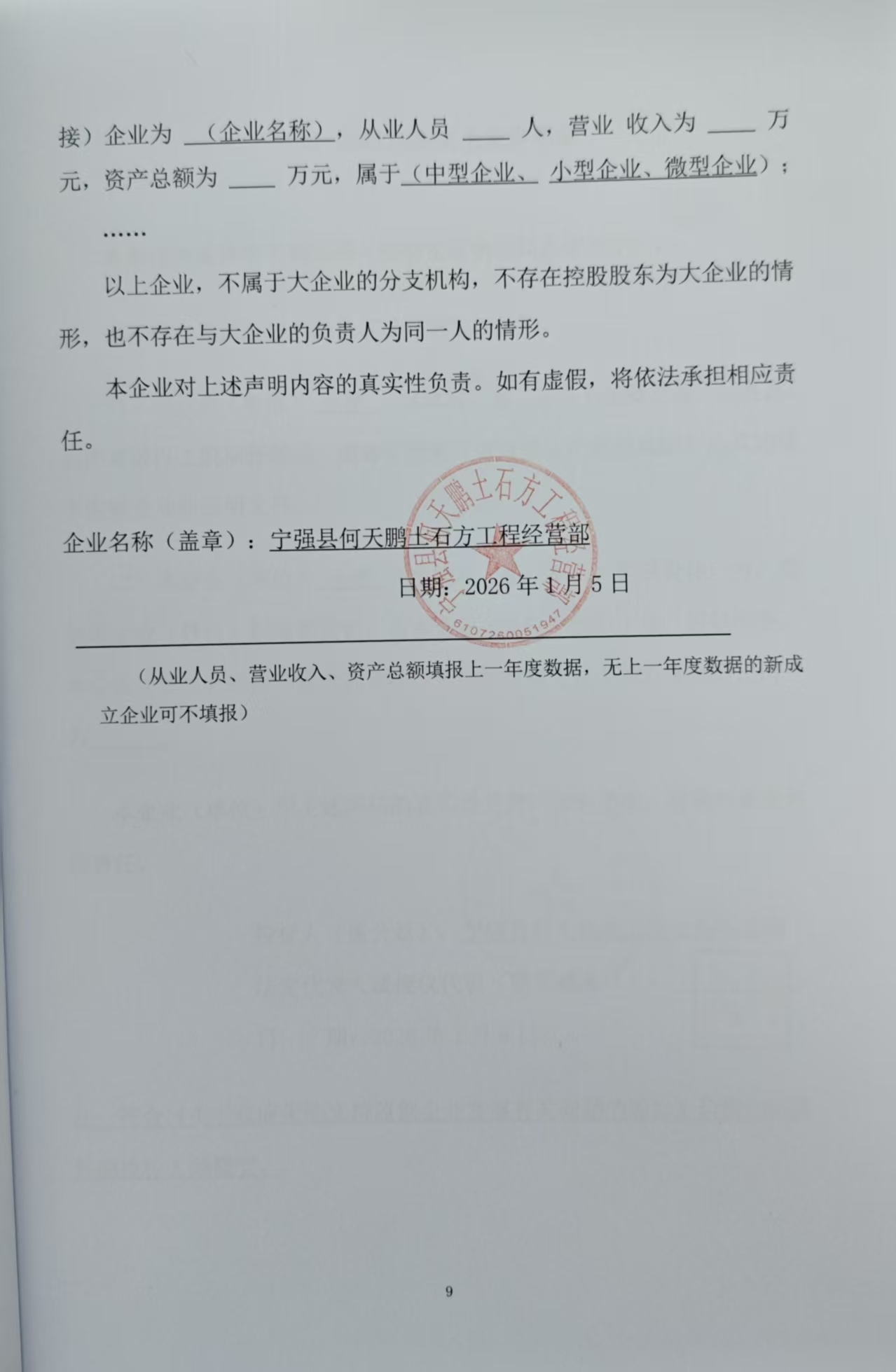 | 宁强县何天鹏土石方工程经营部 | 陕西省汉中市宁强县汉源街道办事处七盘关村二组 | ***,***.**元 | **.** |