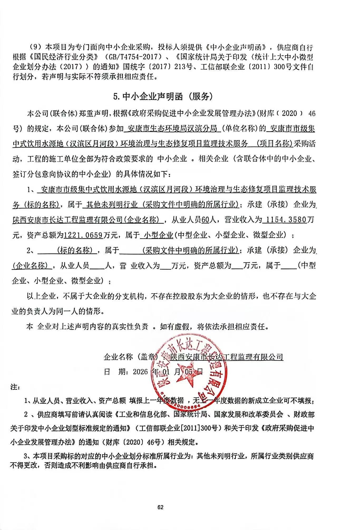 安康市生态环境局汉滨分局安康市市级集中式饮用水源地(汉滨区月河段)环境治理与生态修复项目监理技术服务中标(成交)结果公告
