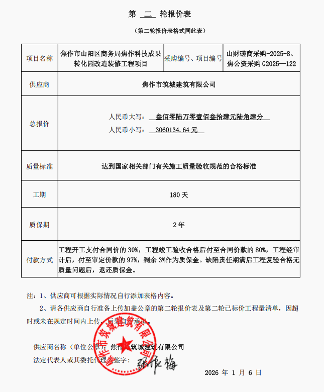 焦作市山阳区商务局焦作科技成果转化园改造装修工程项目-成交公告