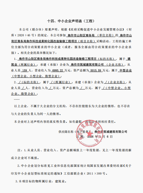 焦作市山阳区商务局焦作科技成果转化园改造装修工程项目*成交公告