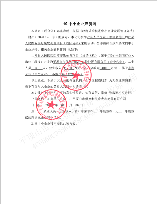 | *、采购项目名称:叶县人民医院医疗废物处置项目 | |||||||||||||||||||||||||||||||