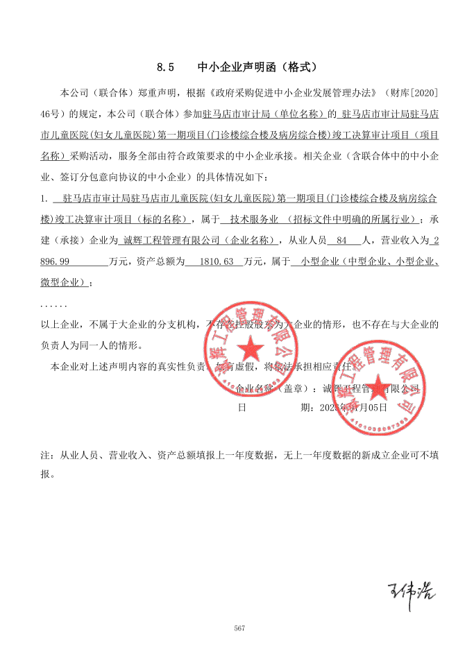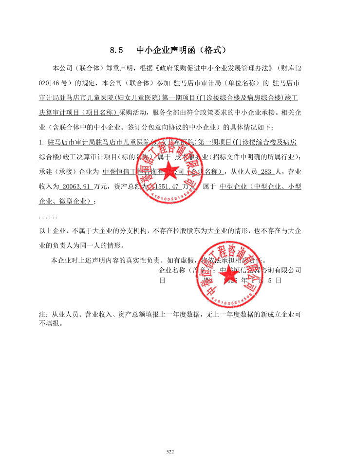 驻马店市审计局驻马店市儿童医院(妇女儿童医院)第一期项目(门诊楼综合楼及病房综合楼)竣工决算审计项目-成交公告