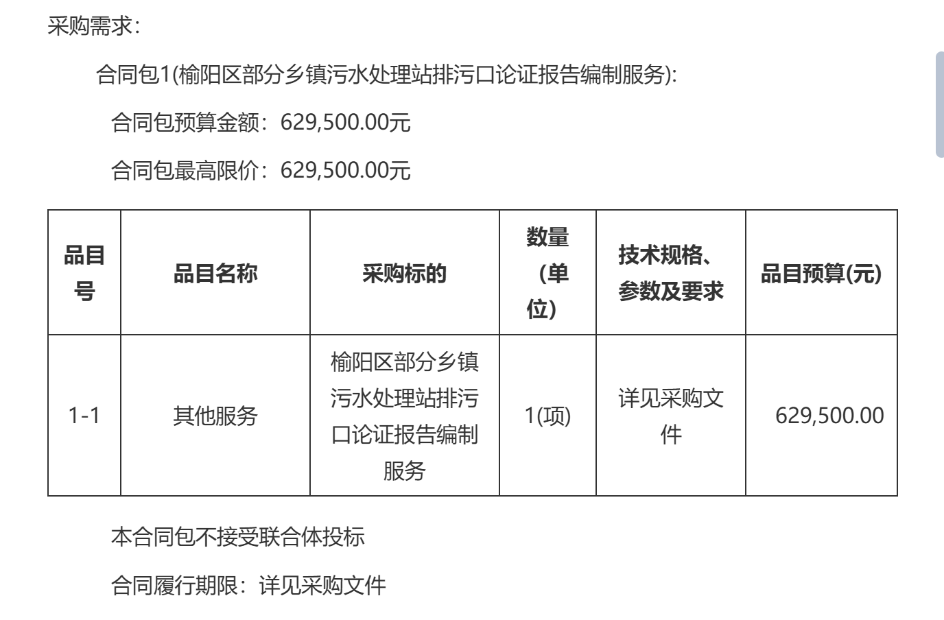 合同包*(榆阳区部分乡镇污水处理站排污口论证报告编制服务):