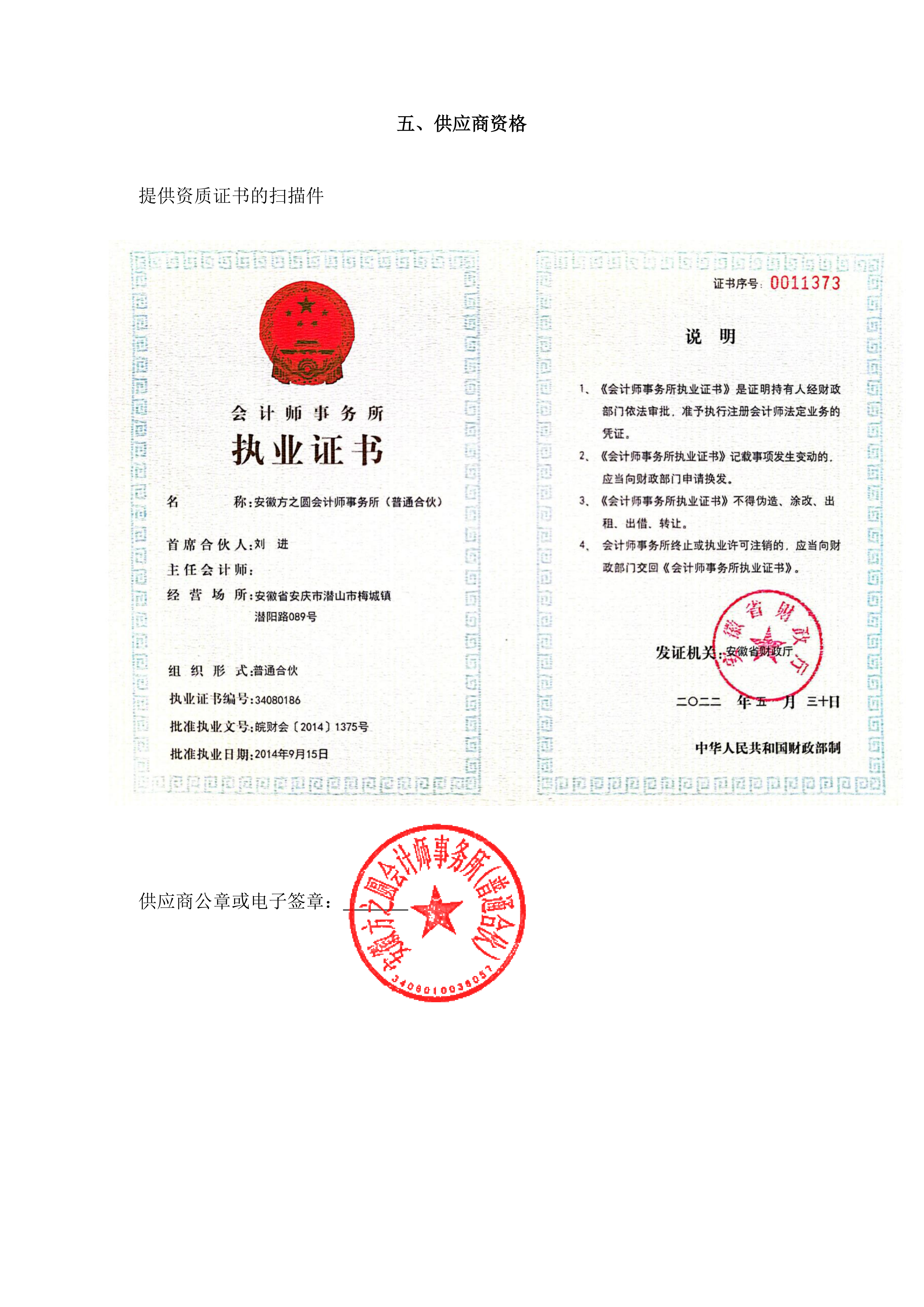 供应商名称:安徽方之圆会计师事务所(普通合伙)