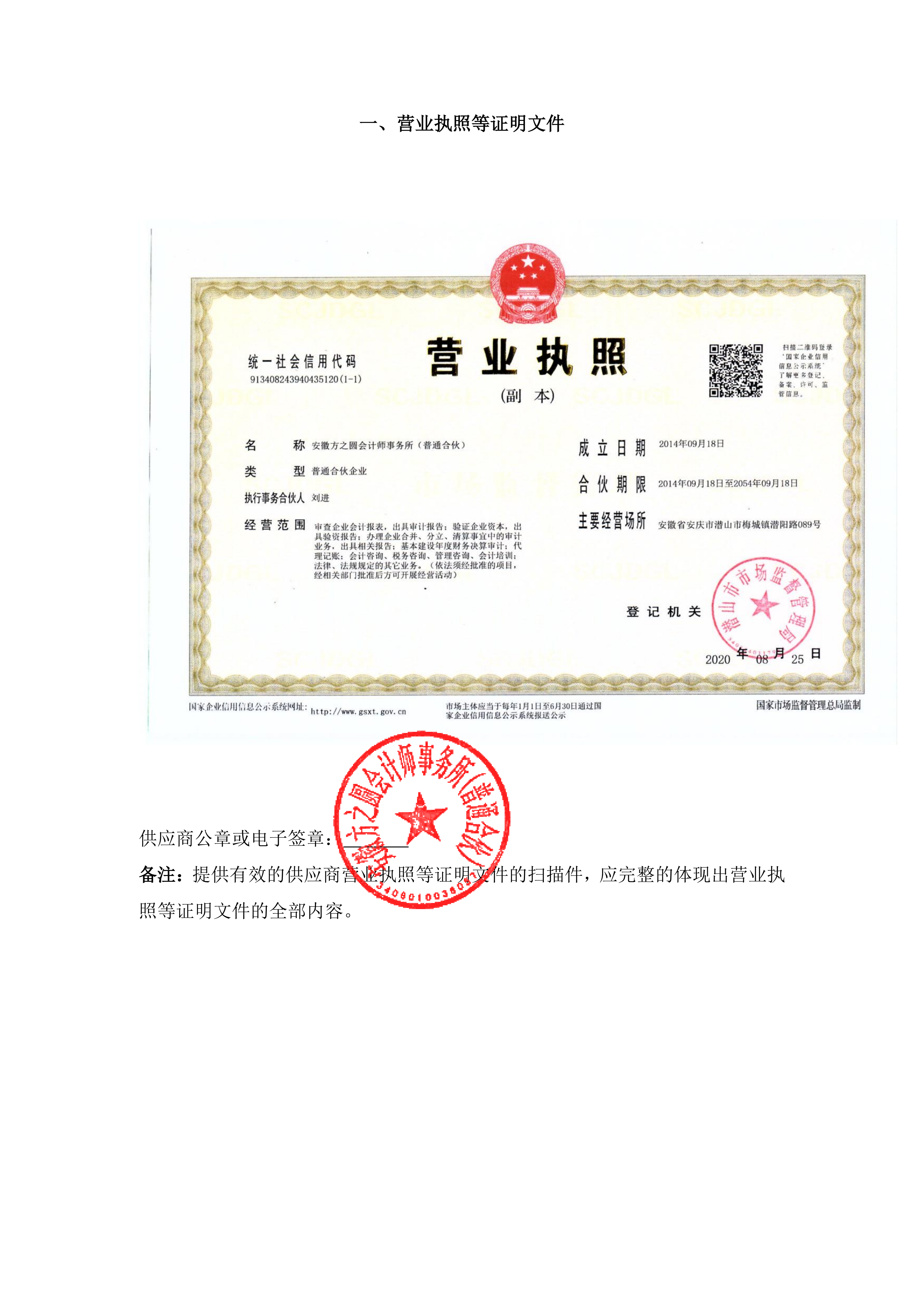 营业执照等证明文件:*****省直财务审计框架协议 申请文件(*)***.***