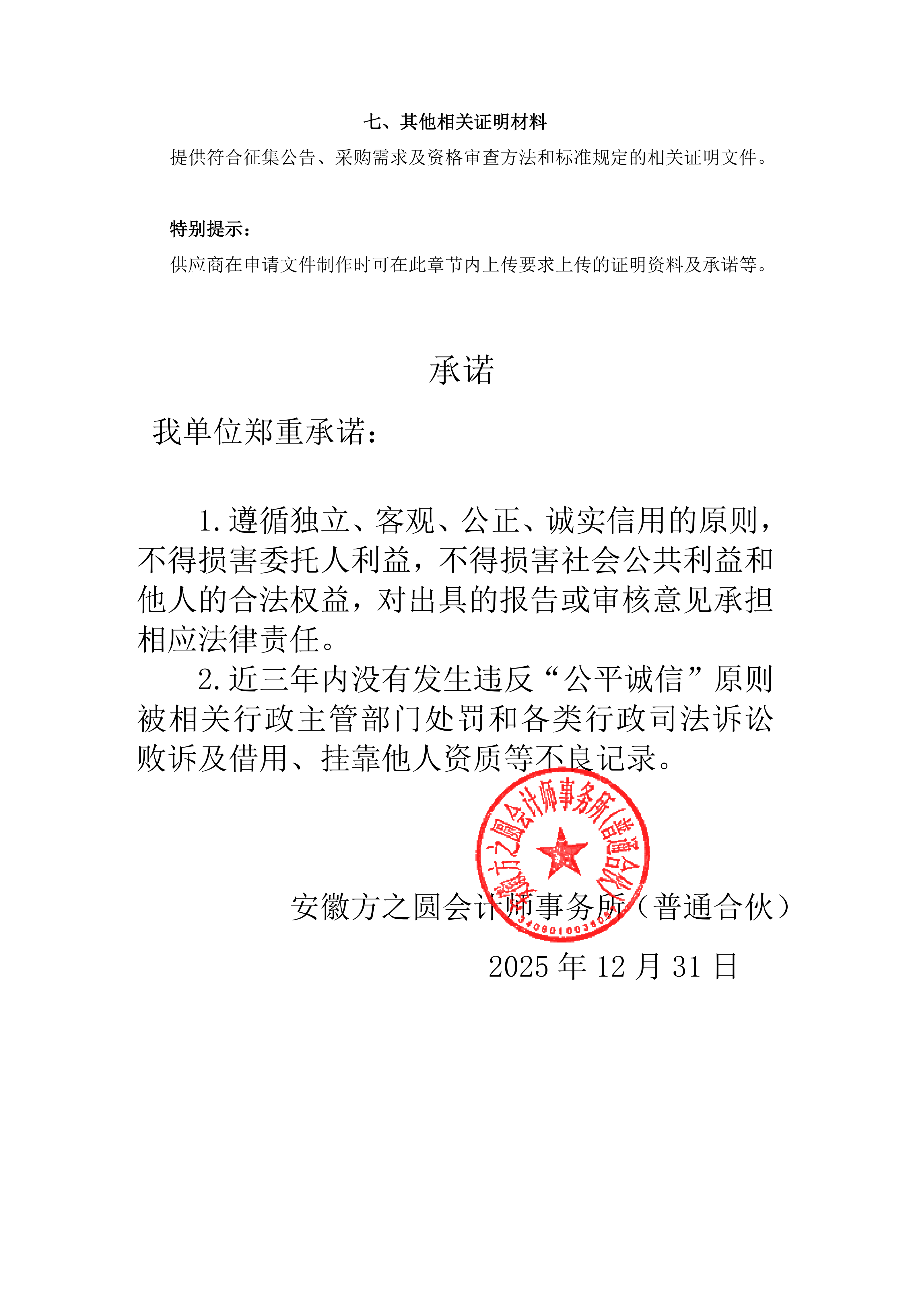 承诺:*****省直财务审计框架协议 申请文件(*)***.***