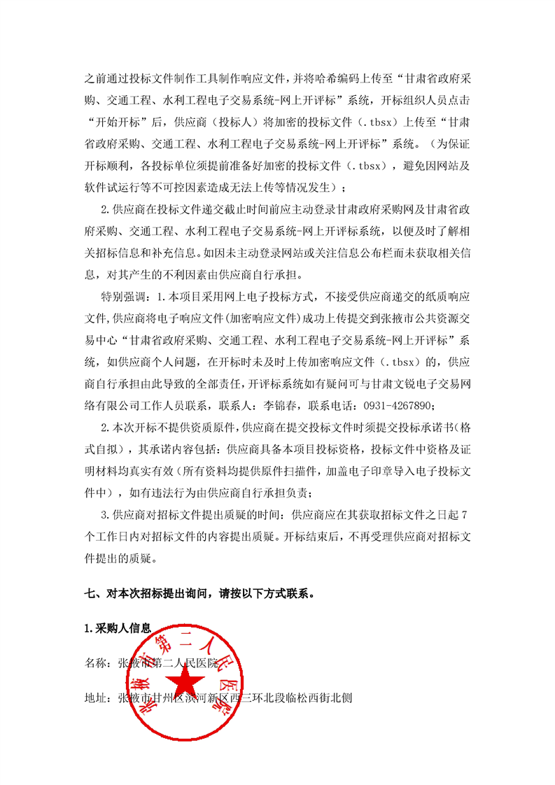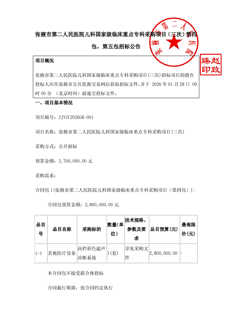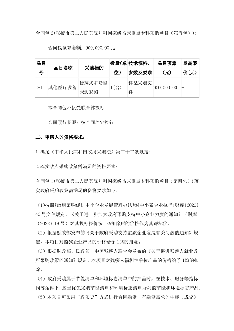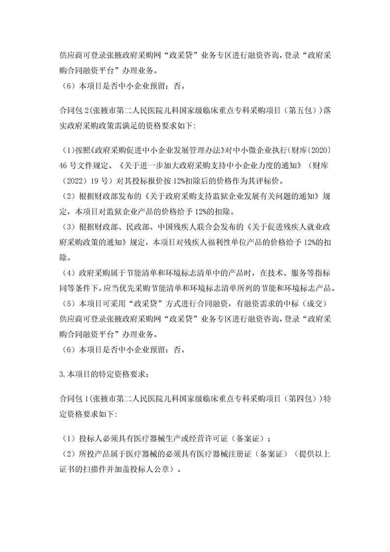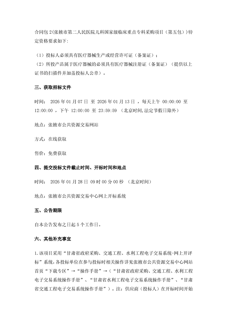 张掖市第二人民医院儿科国家级临床重点专科采购项目(三次)第四包、第五包招标公告采购/资审公告