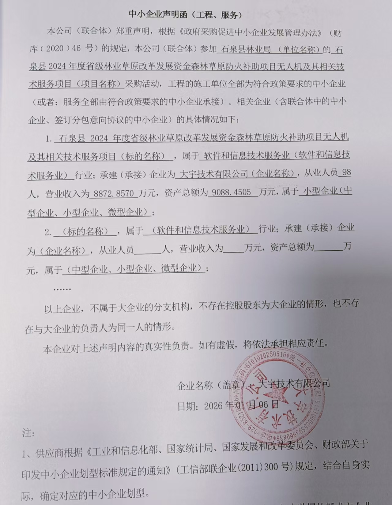 石泉县林业局石泉县****年度省级林业草原改革发展资金森林草原防火补助项目无人机及其相关技术服务项目中标(成交)结果公告
