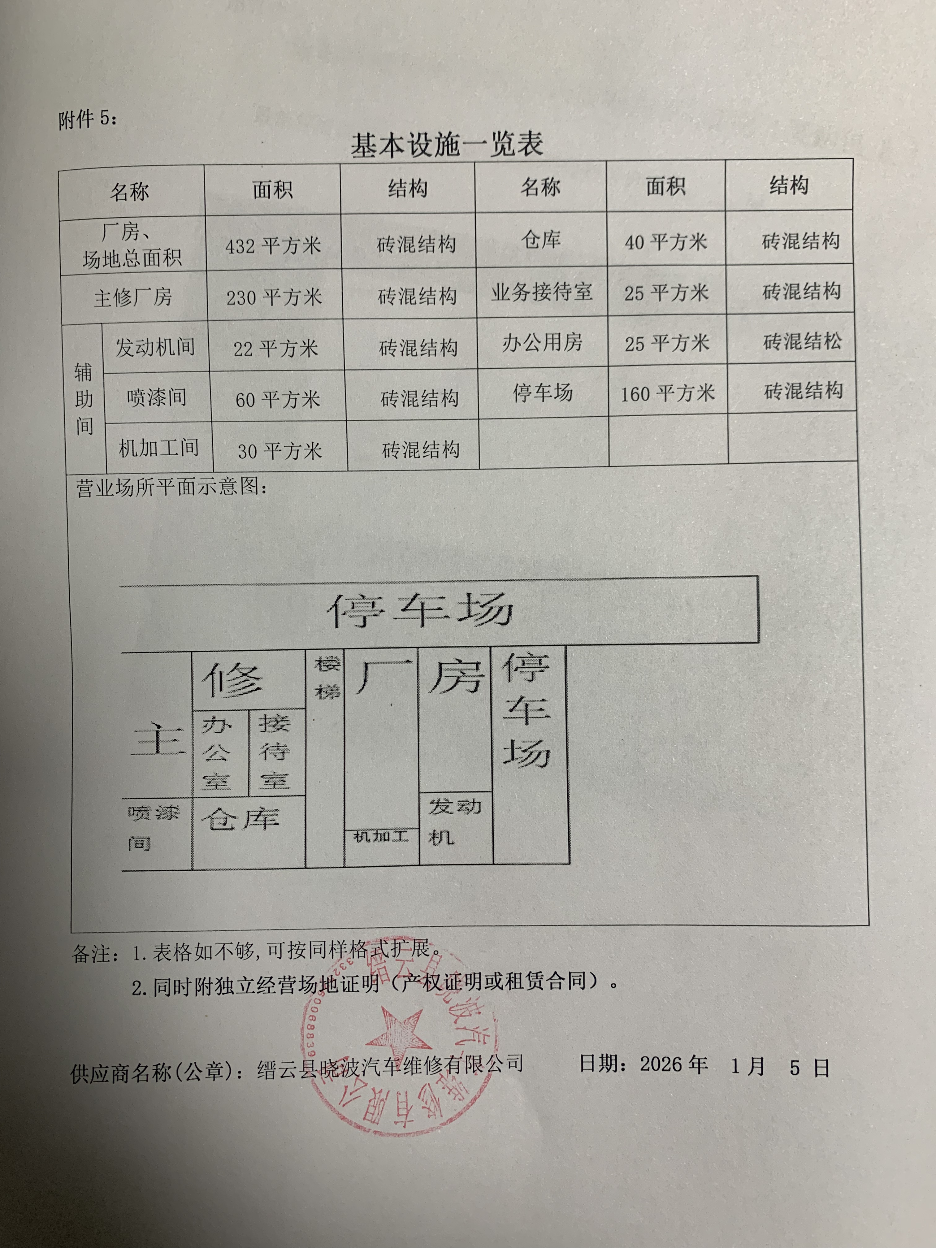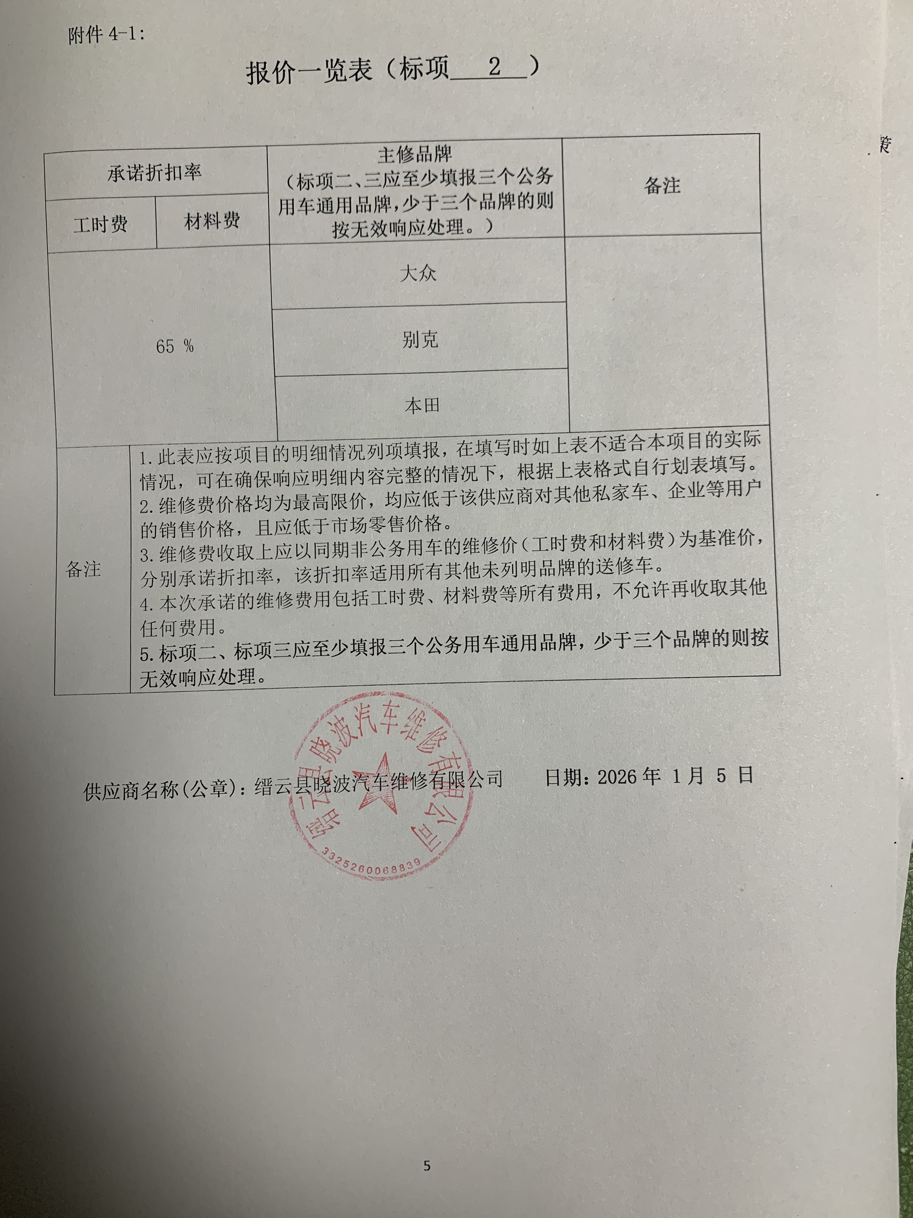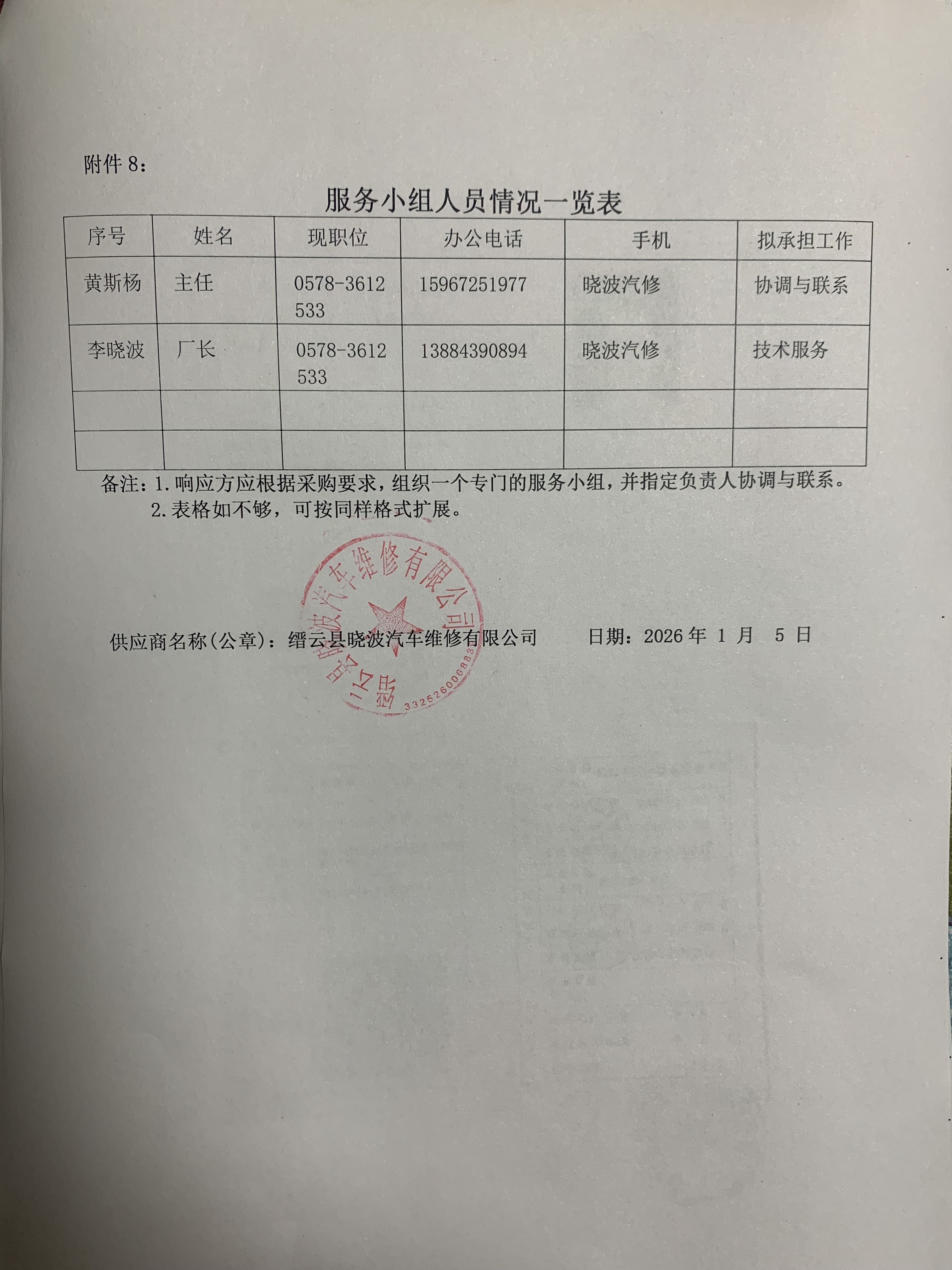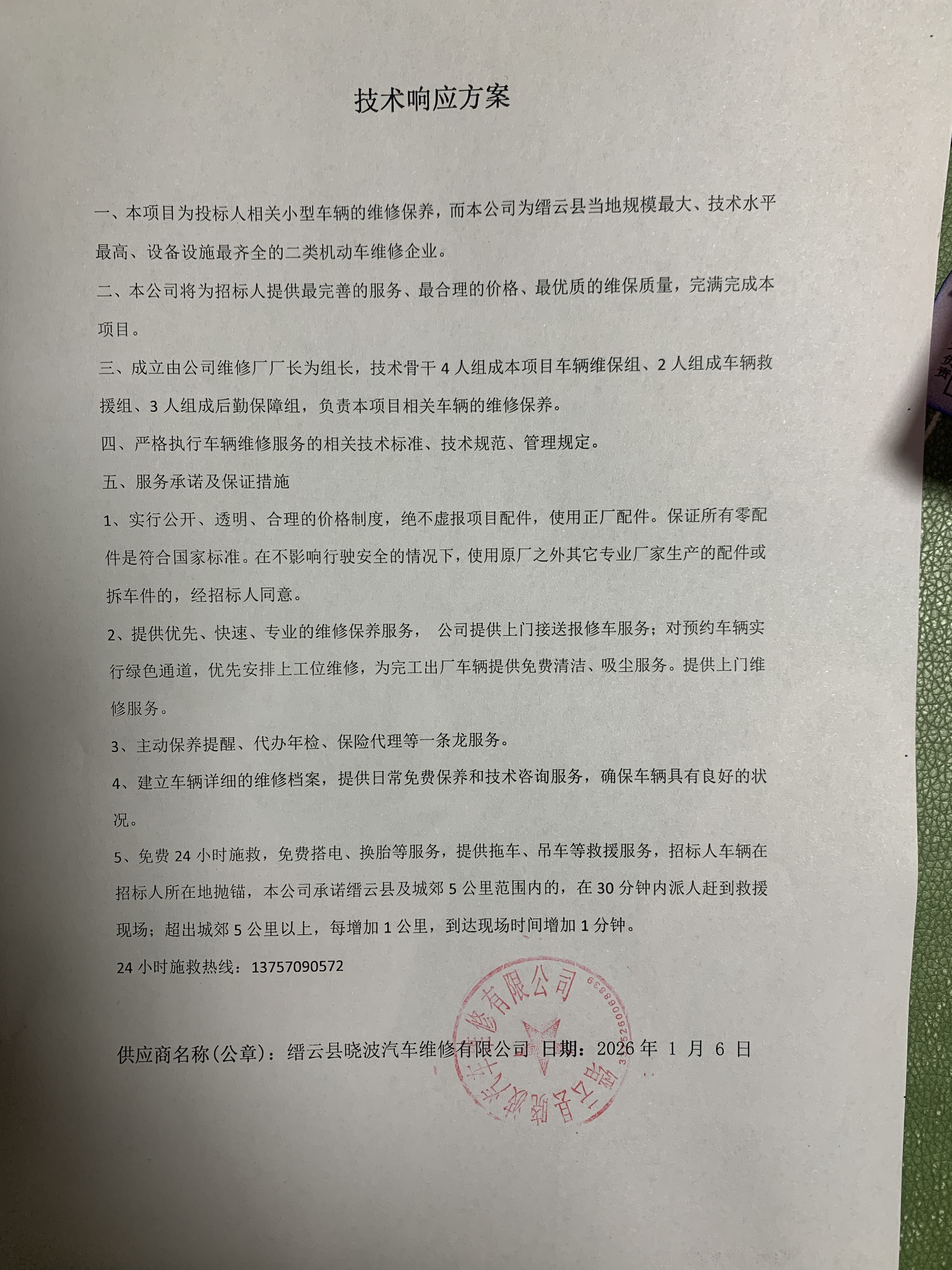 缙云县晓波汽车维修有限公司入围2026年度缙云县公务用车维修和保养服务开放式框架协议采购项目的结果公告