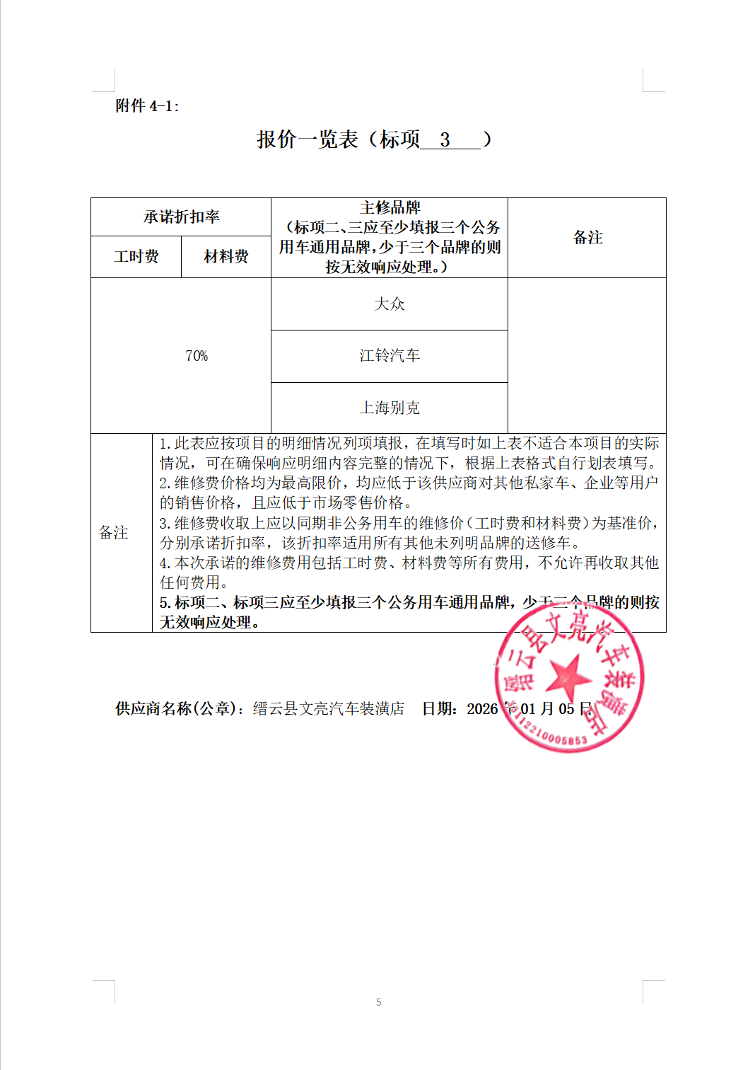 项目名称:****年度缙云县公务用车维修和保养服务开放式框架协议采购项目