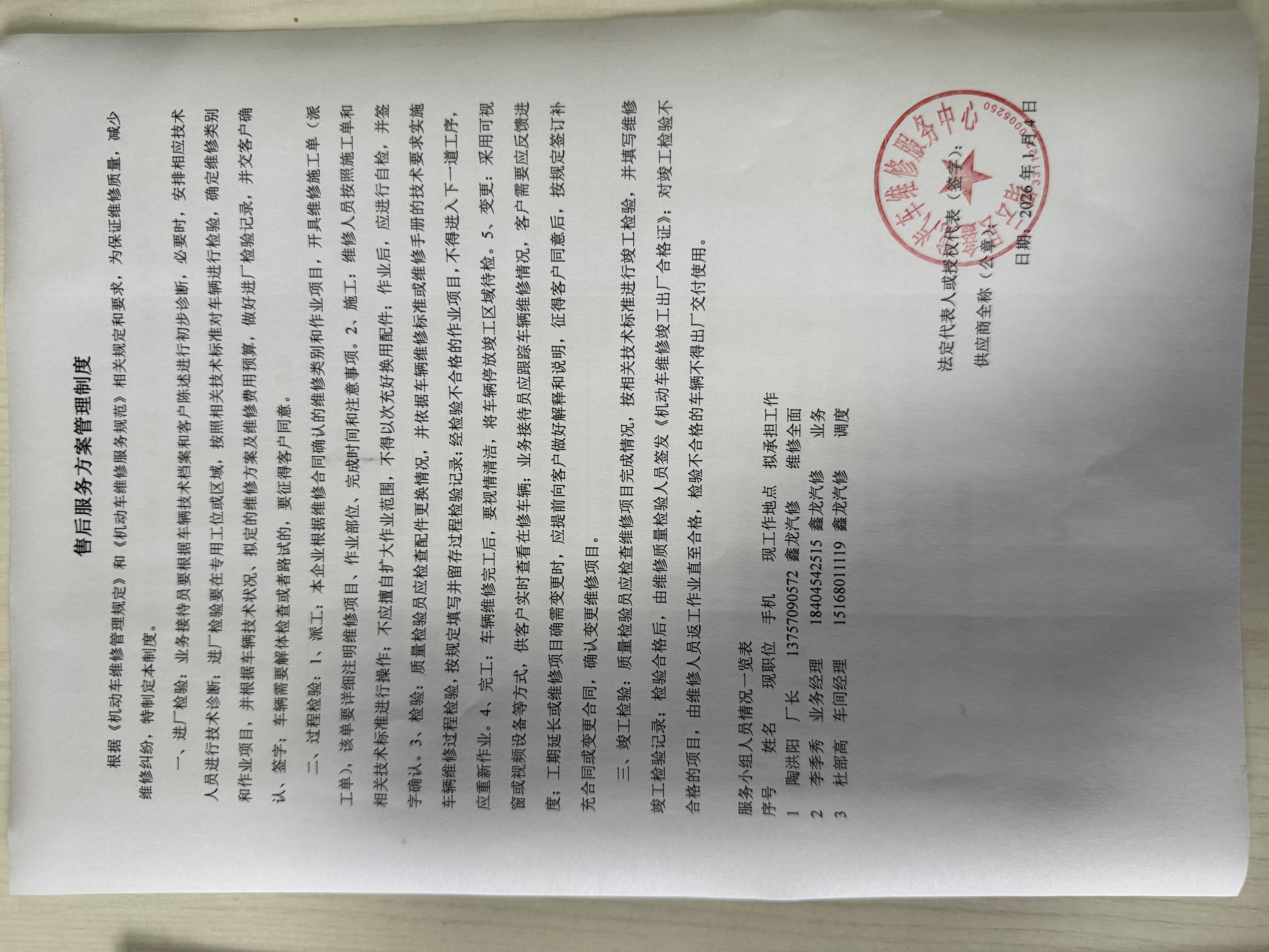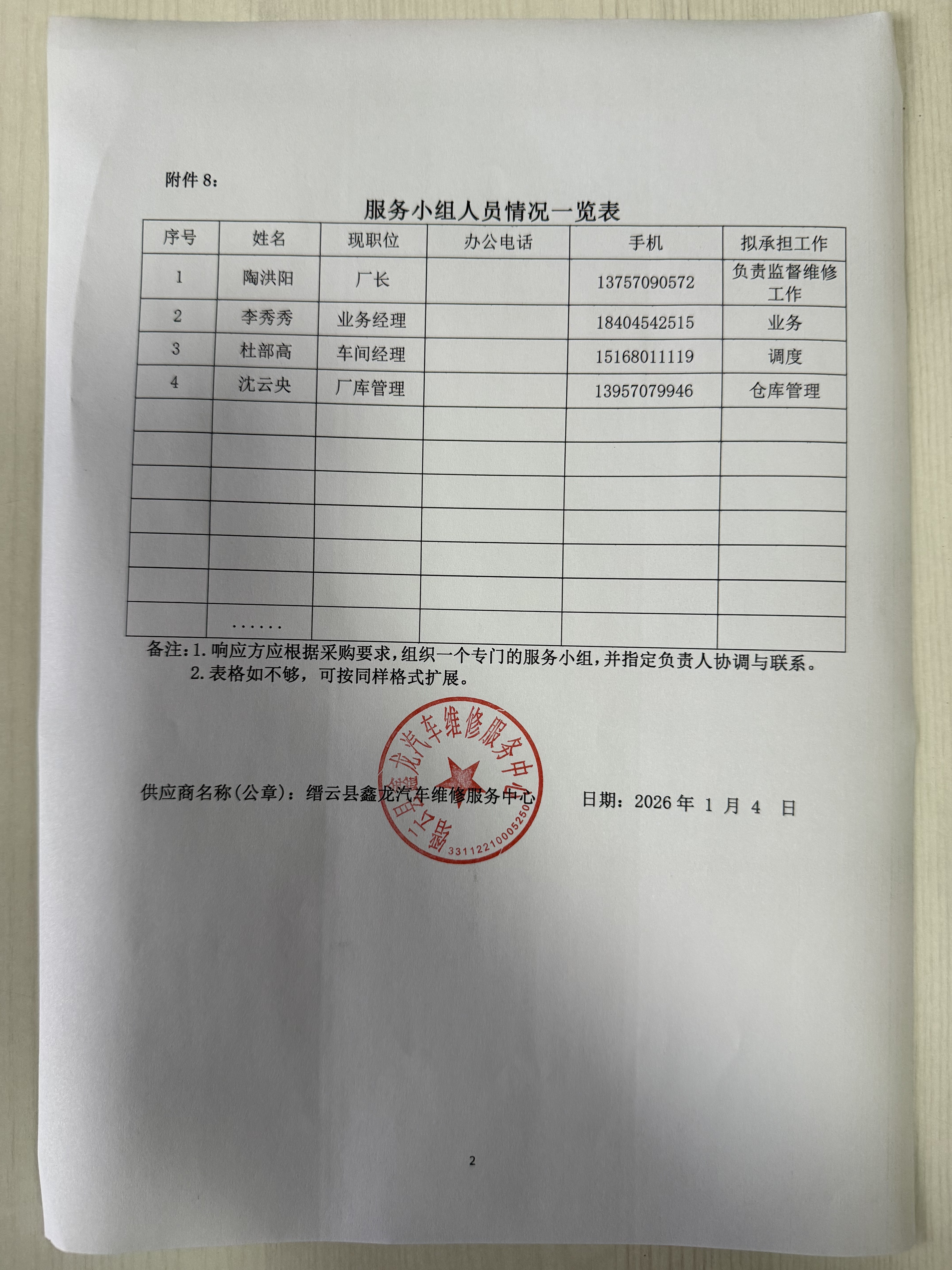 供应商名称:缙云县鑫龙汽车维修服务中心