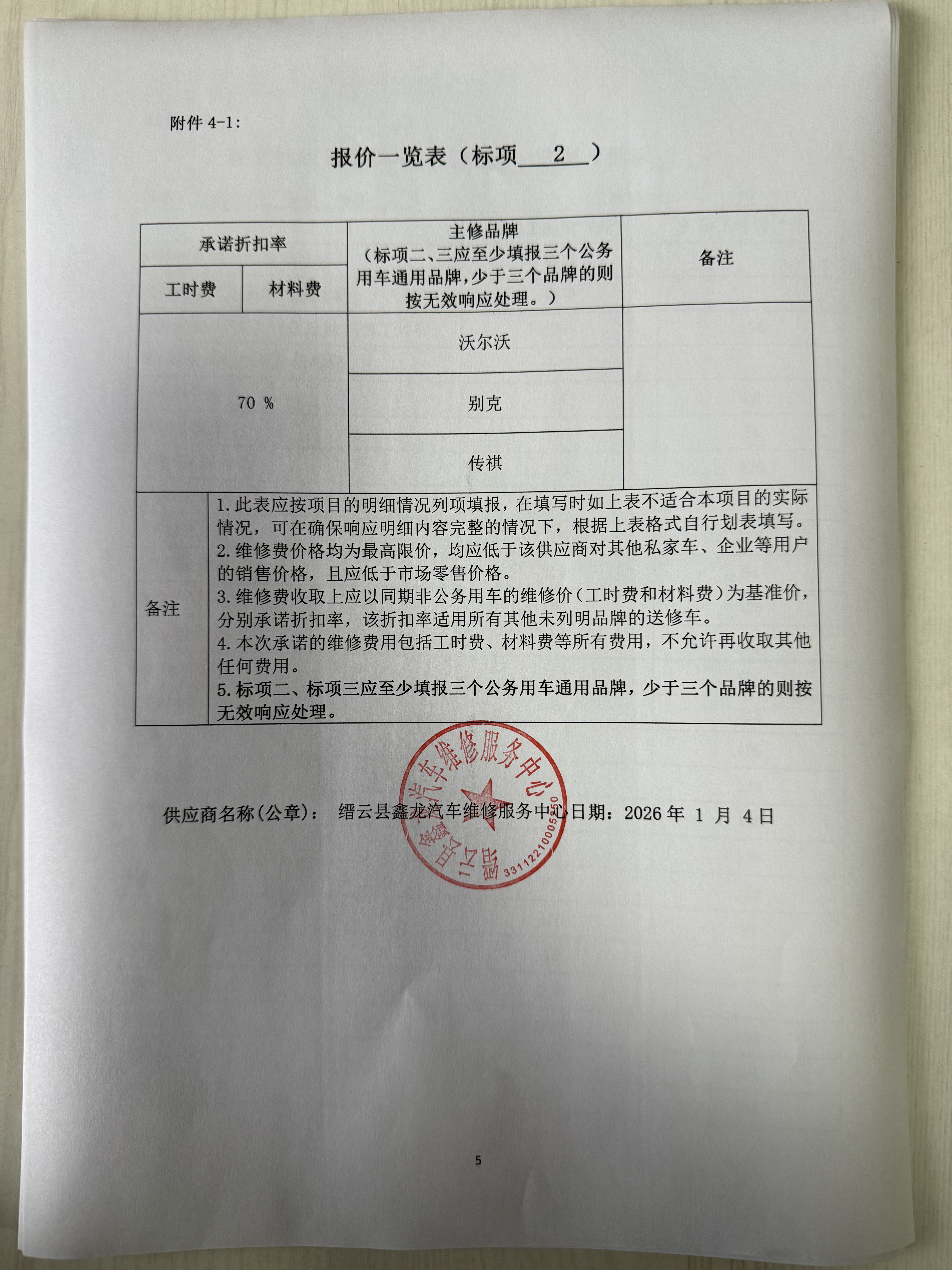 缙云县鑫龙汽车维修服务中心入围2026年度缙云县公务用车维修和保养服务开放式框架协议采购项目的结果公告