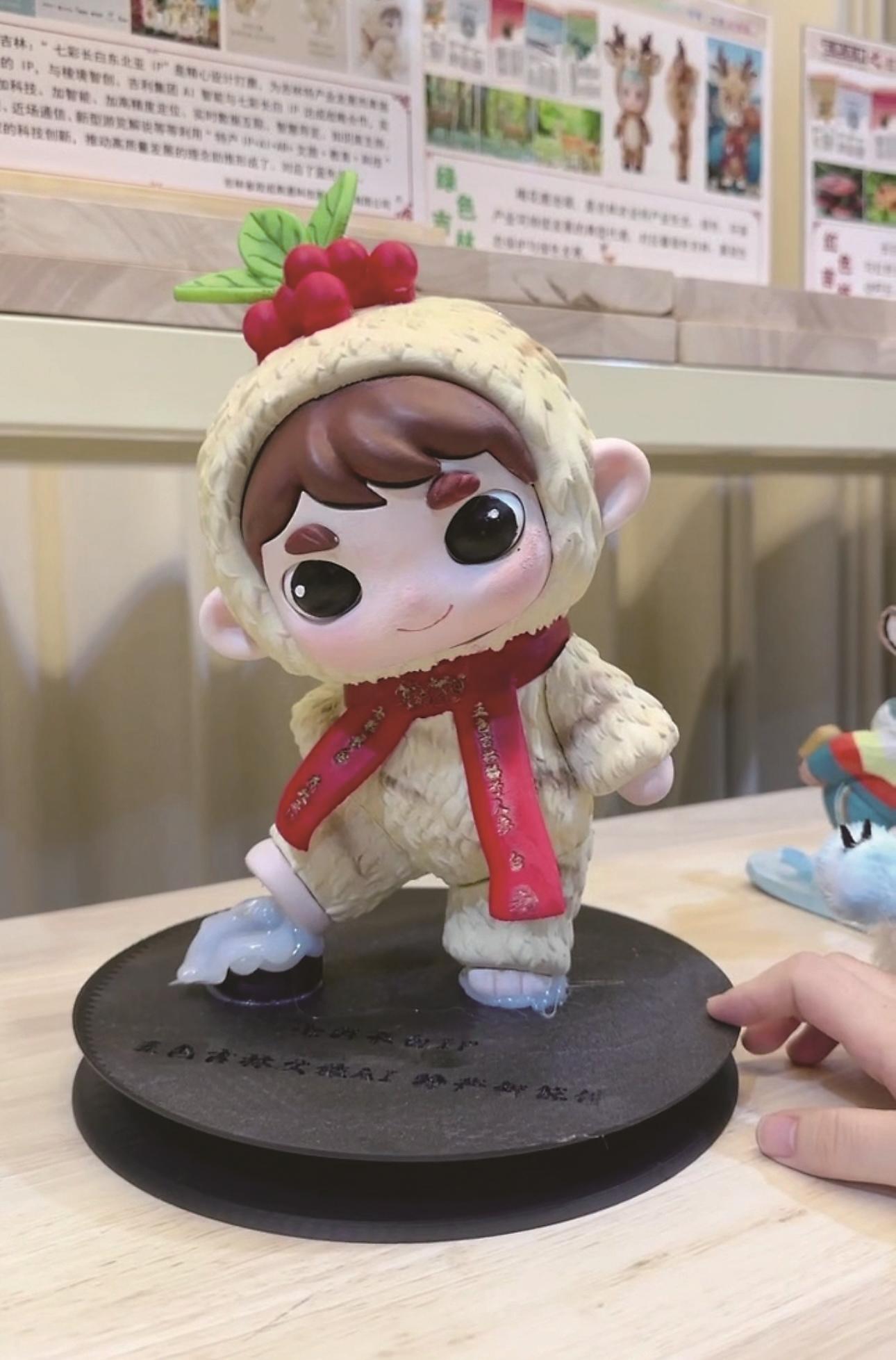 “让特产开口、讲好世界级人参产业产品文化故事”。****年**月**日,“吉聚参意·文创焕新”特色产业文旅产品创意设计活动收官仪式,一款灵动可爱的人参形象玩偶受到了广大评委和观众的青睐。一株顶着红缨帽的“人参娃娃”,用稚嫩的童声讲述着千年参文化。这不是童话场景,这款名为“七彩长白**·五色吉林特产文旅符号**智能体”,是人参的**与吉利**的融合技术创新产品,还有自己的名字——“百寿·吉吉”。
