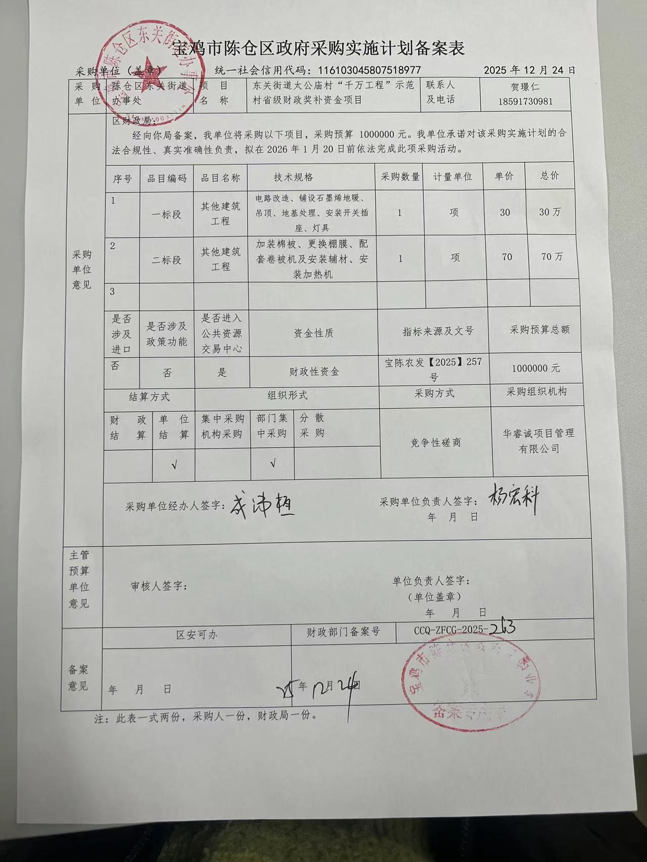 | *** | 其他专业施工 | 二标段太公庙村蔬菜大棚提升改造 | *(项) | 详见采购文件 | ***,***.** |