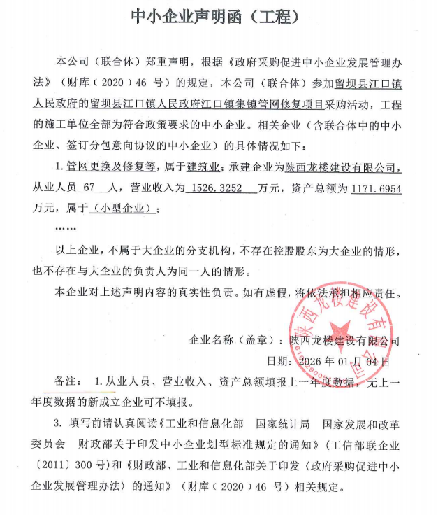 留坝县江口镇人民政府江口镇集镇管网修复项目成交结果公告