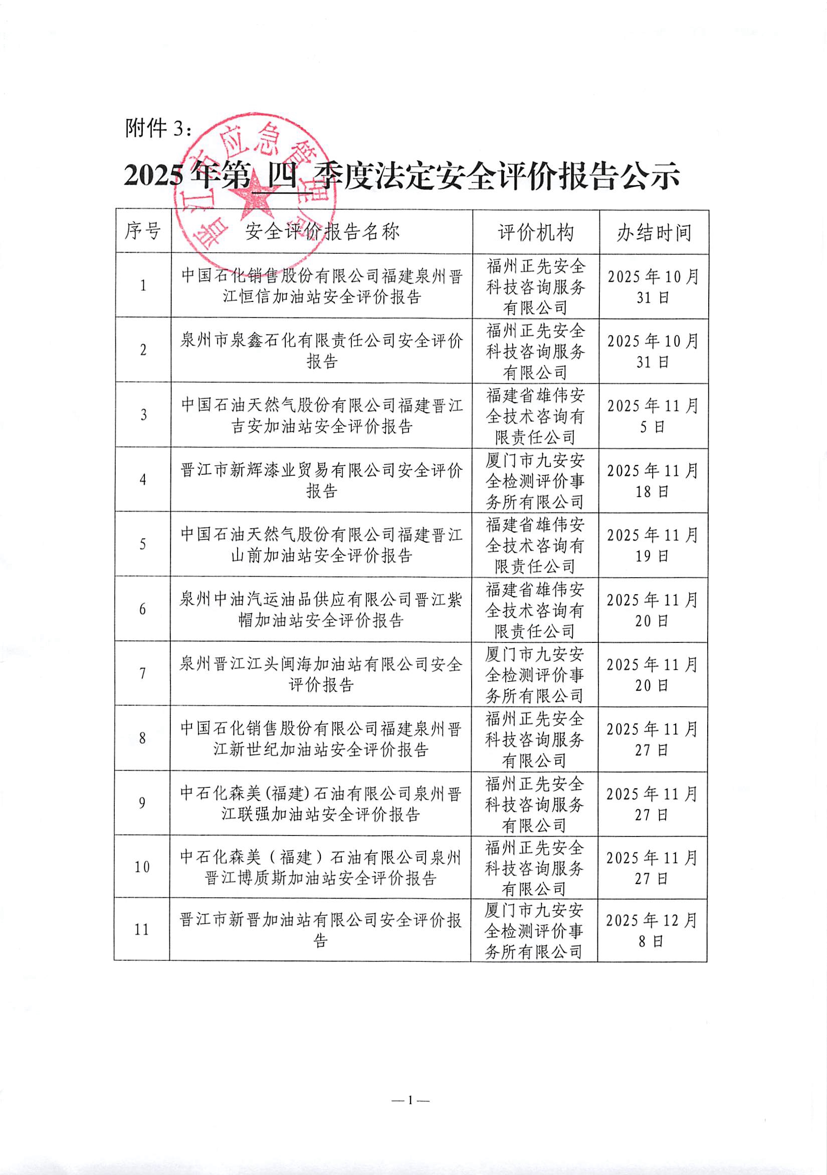 晋江市应急管理局2025年第四季度法定安全评价报告公示