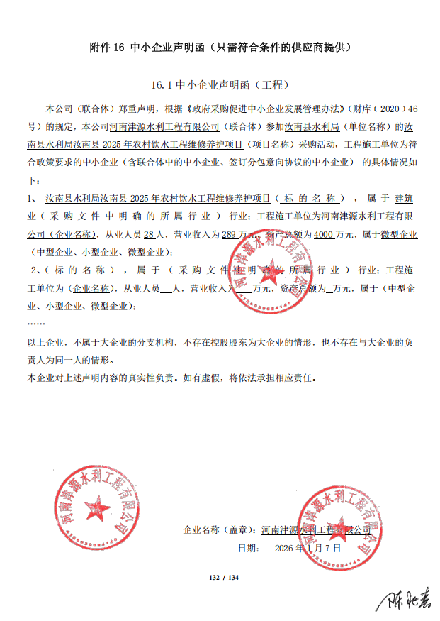 汝南县水利局汝南县2025年农村饮水工程维修养护项目-成交公告