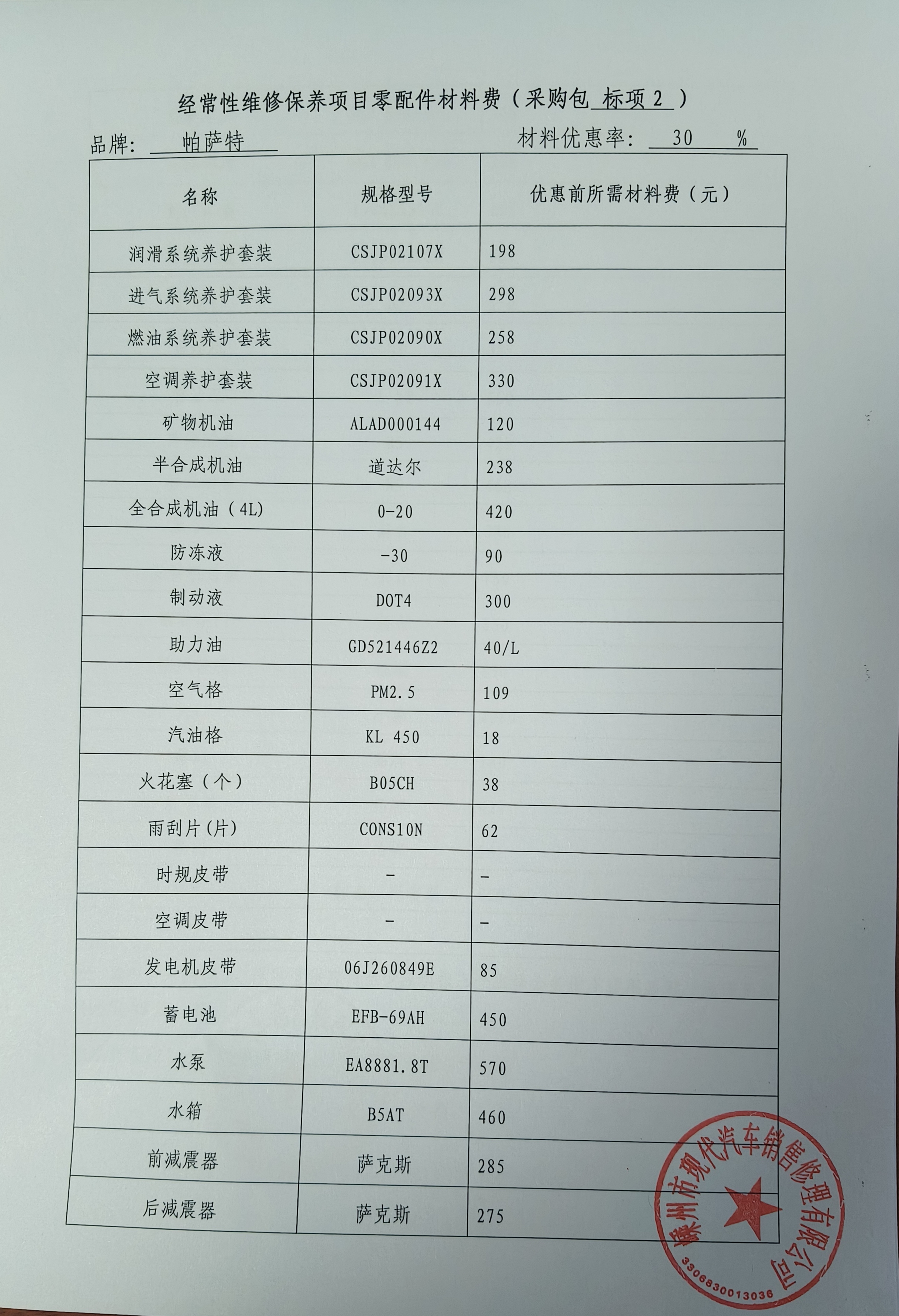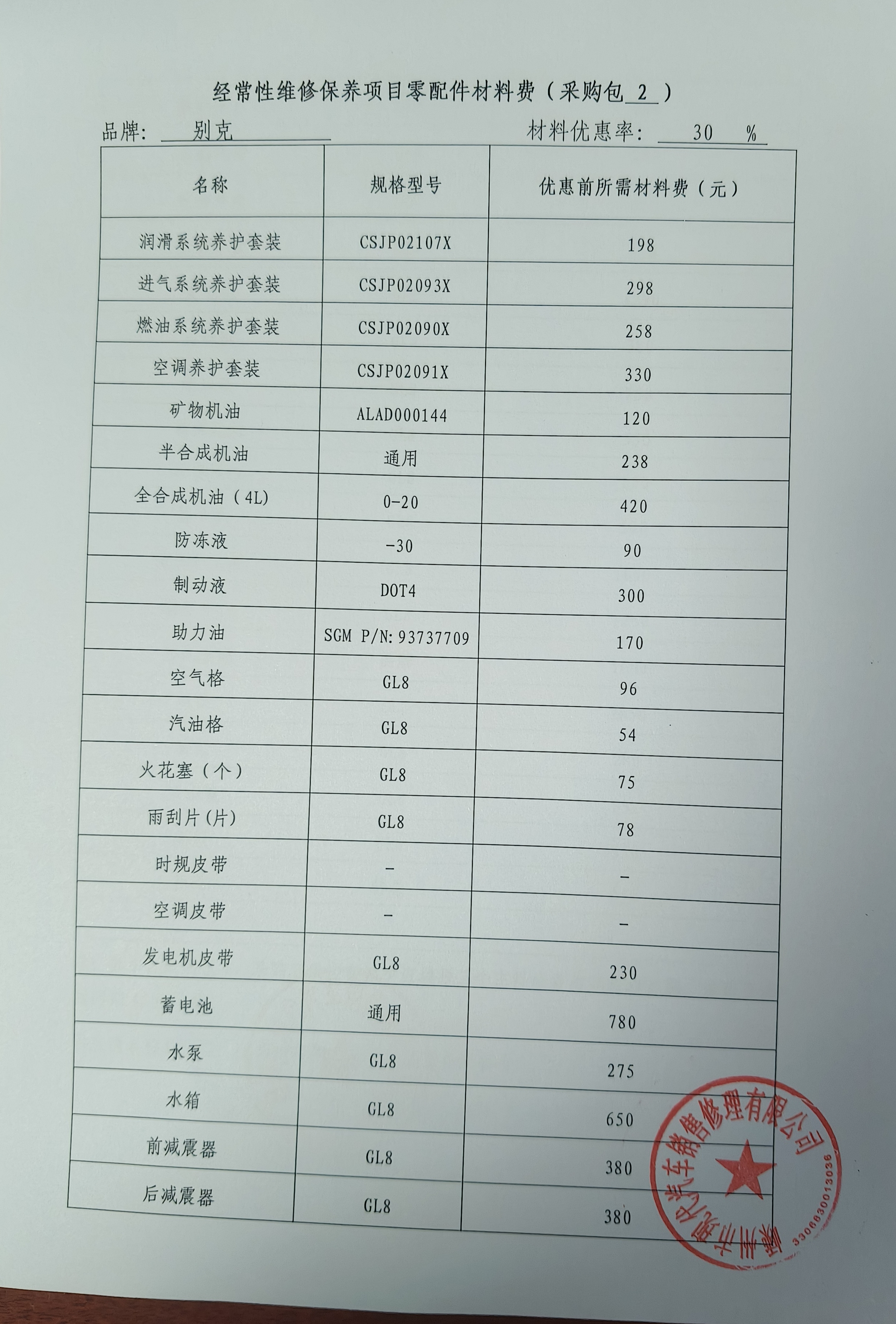 经常性维修保养项目零配件材料费:配件材料费*.***