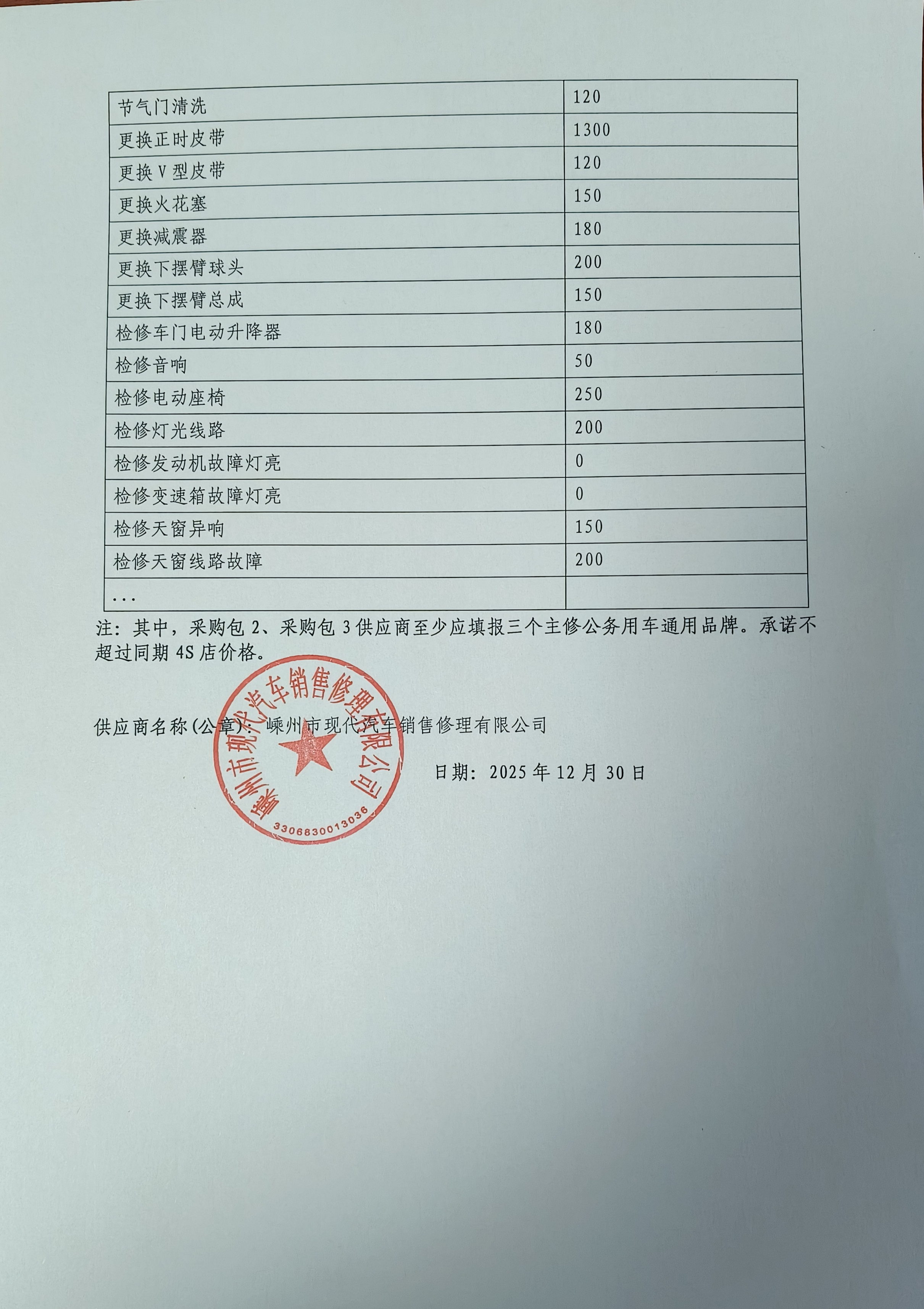 嵊州市现代汽车销售修理有限公司、二类维修供应商(综合修理类)