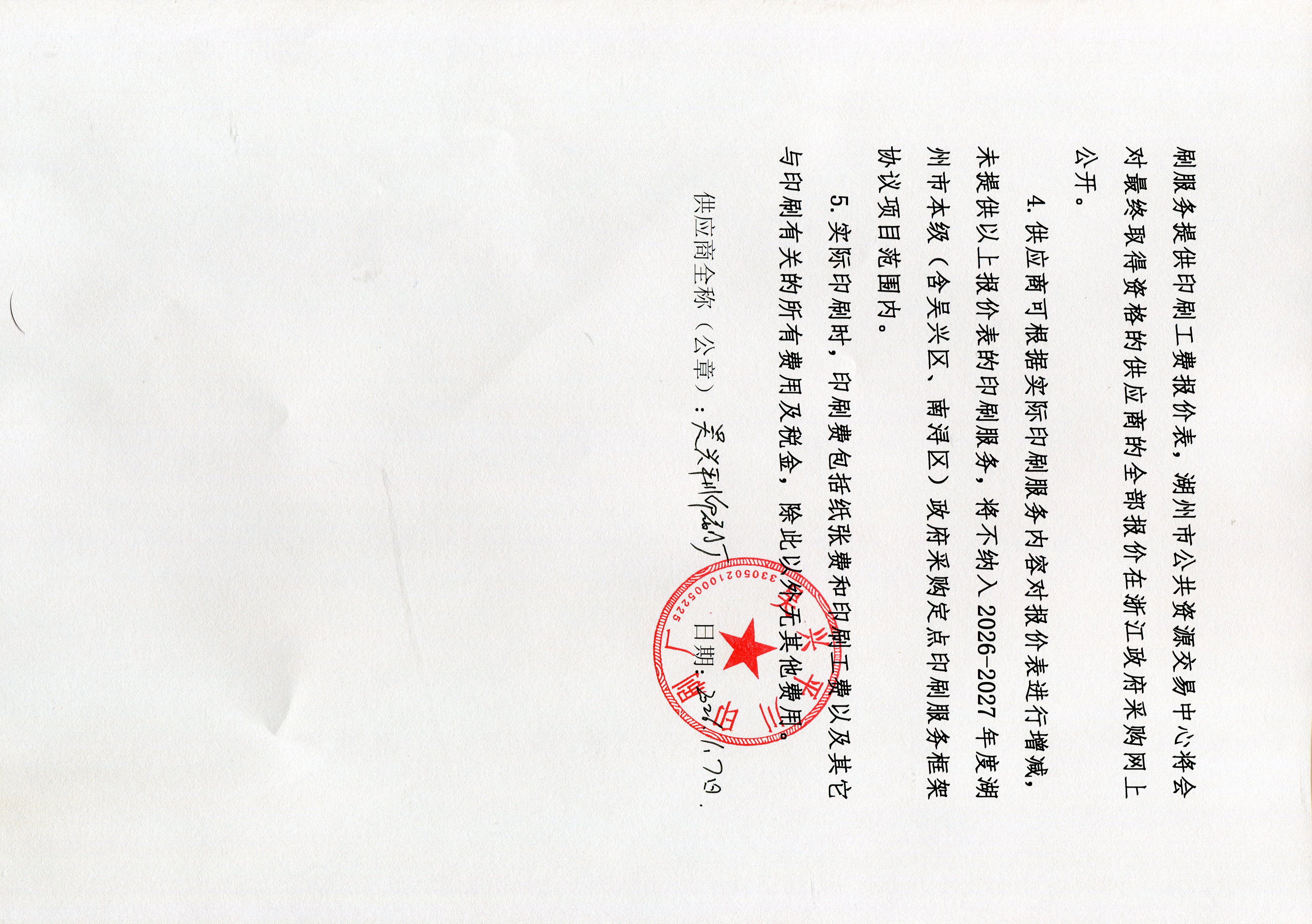 项目名称:*********年度湖州市本级(含吴兴区、南浔区)政府采购定点印刷服务框架协议项目