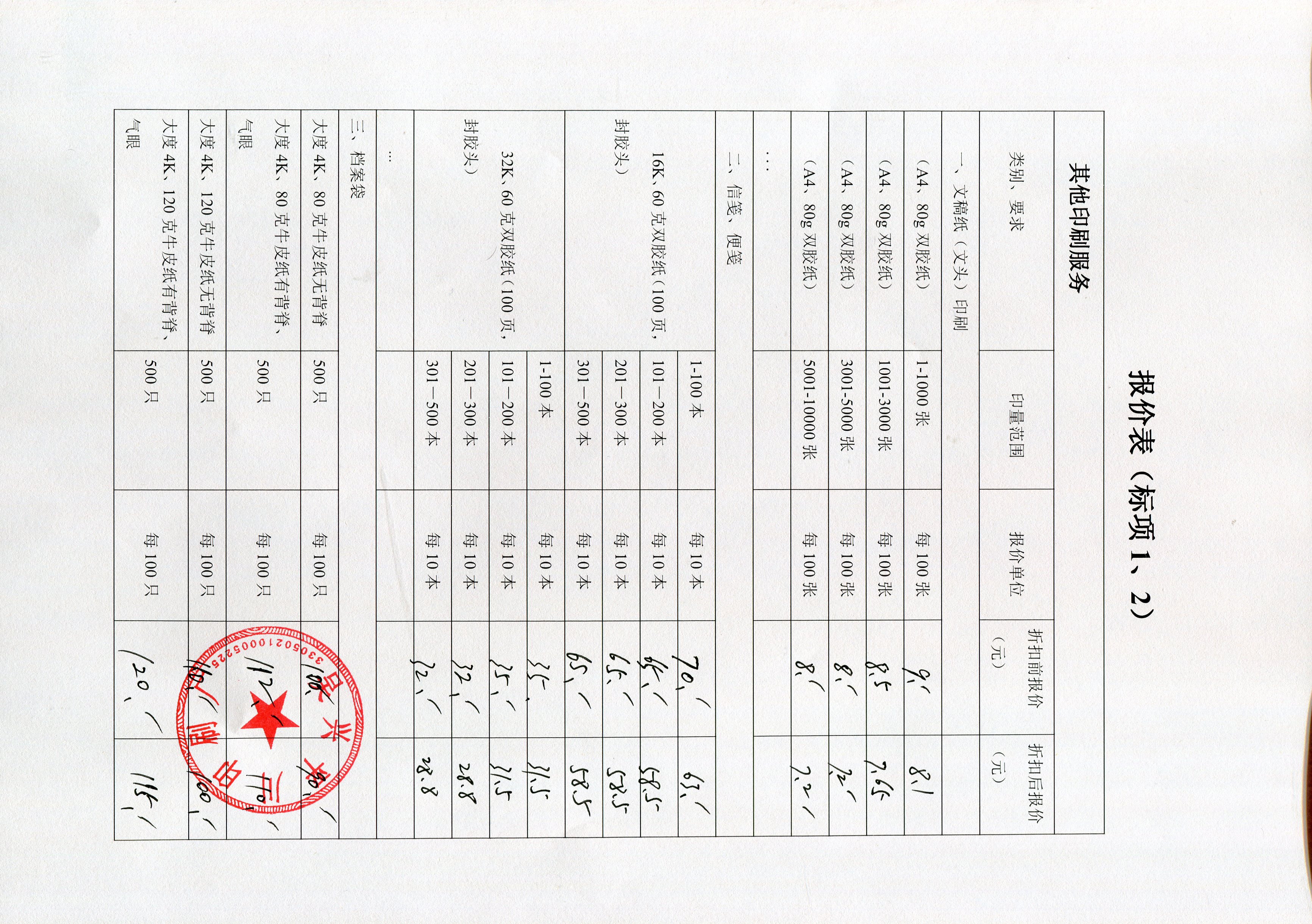 售后服务方案:*.提供印刷服务时,制版、印刷、装订要求应按不低于国家、省、市有关部门规定的质量标准执行。 *.对承印的物品,必须严格按响应时所承诺的内容进行服务,纸张品质应符合采购人的要求;所有印刷成品要字迹清楚、墨迹饱满、颜色无偏差、规格尺寸准确。 *.保证印刷所用材料是未使用过的合同承诺的合格正品,完全符合质量和性能的要求。对于印刷技木、工艺或印刷材料的缺陷等其他由我公司造成的,费用由我公司承担。根据法定第三方机构的鉴定结果,如证明印刷是有缺陷的,包括潜在的缺陷或使用不符合要求的印刷材料等,采购人可以以书面形式向我公司提出索赔。 *.我公司在收到索赔通知后,在服务承诺约定的时间内没有采取措施的,采购人可采取必要的补救措施,所产生的风险和费用将由我公司承担。