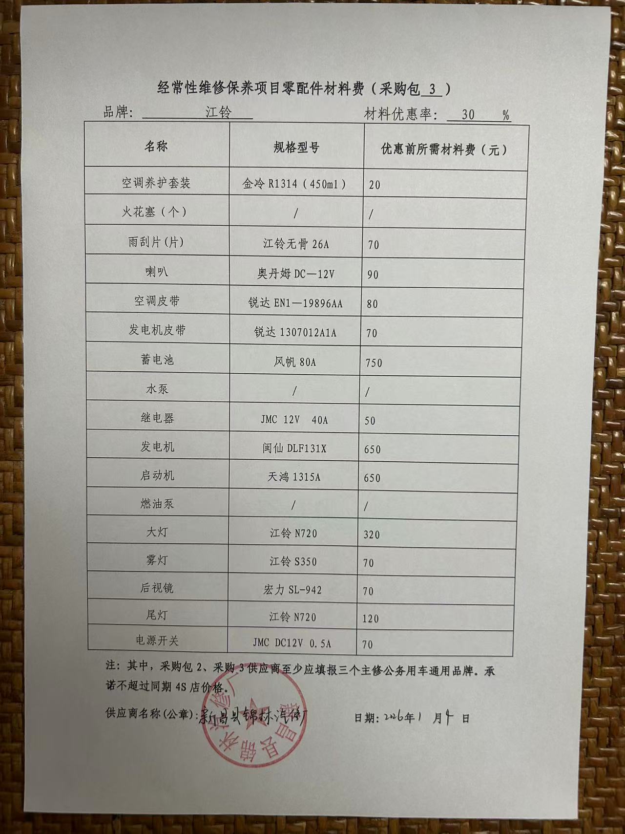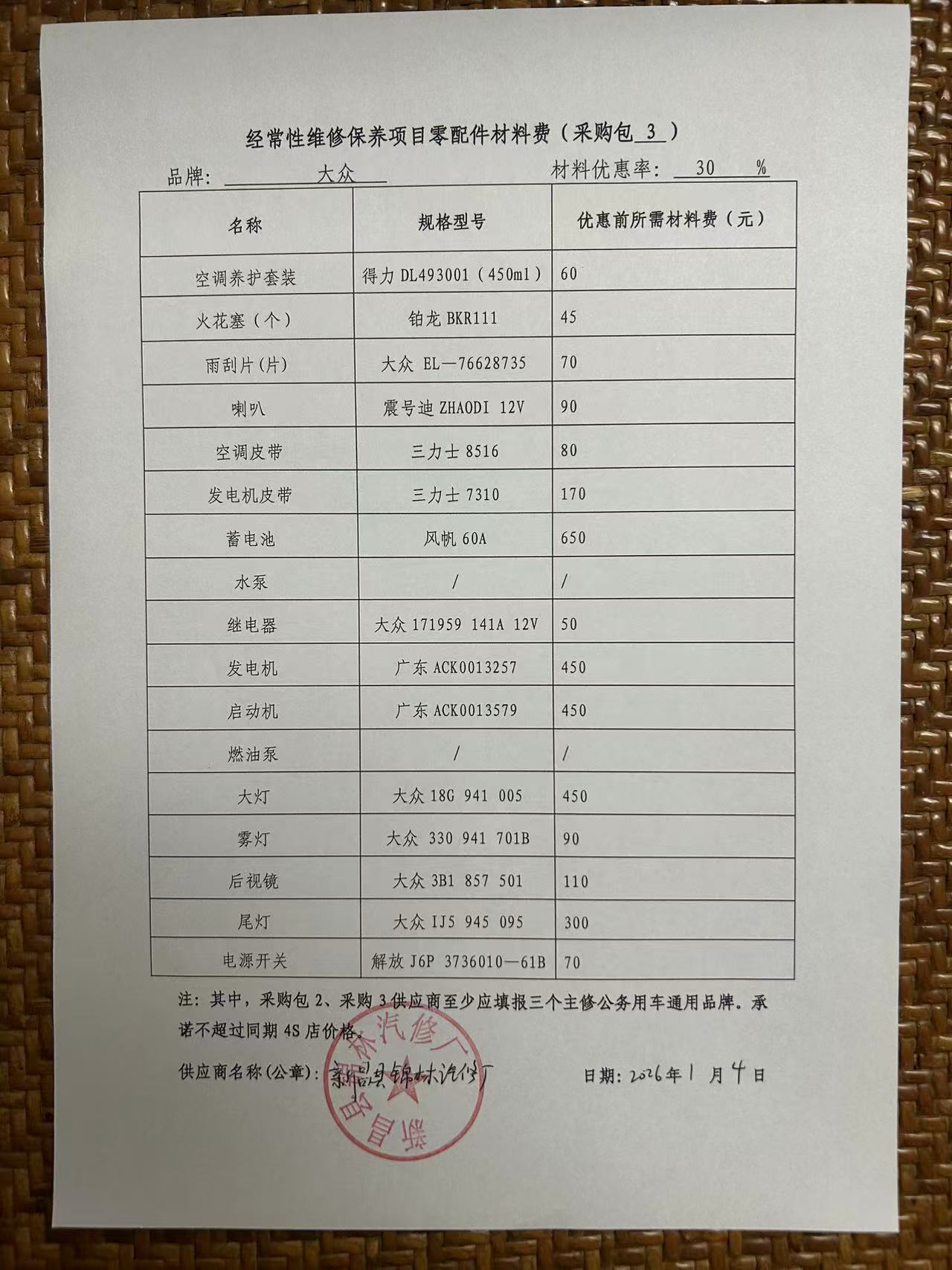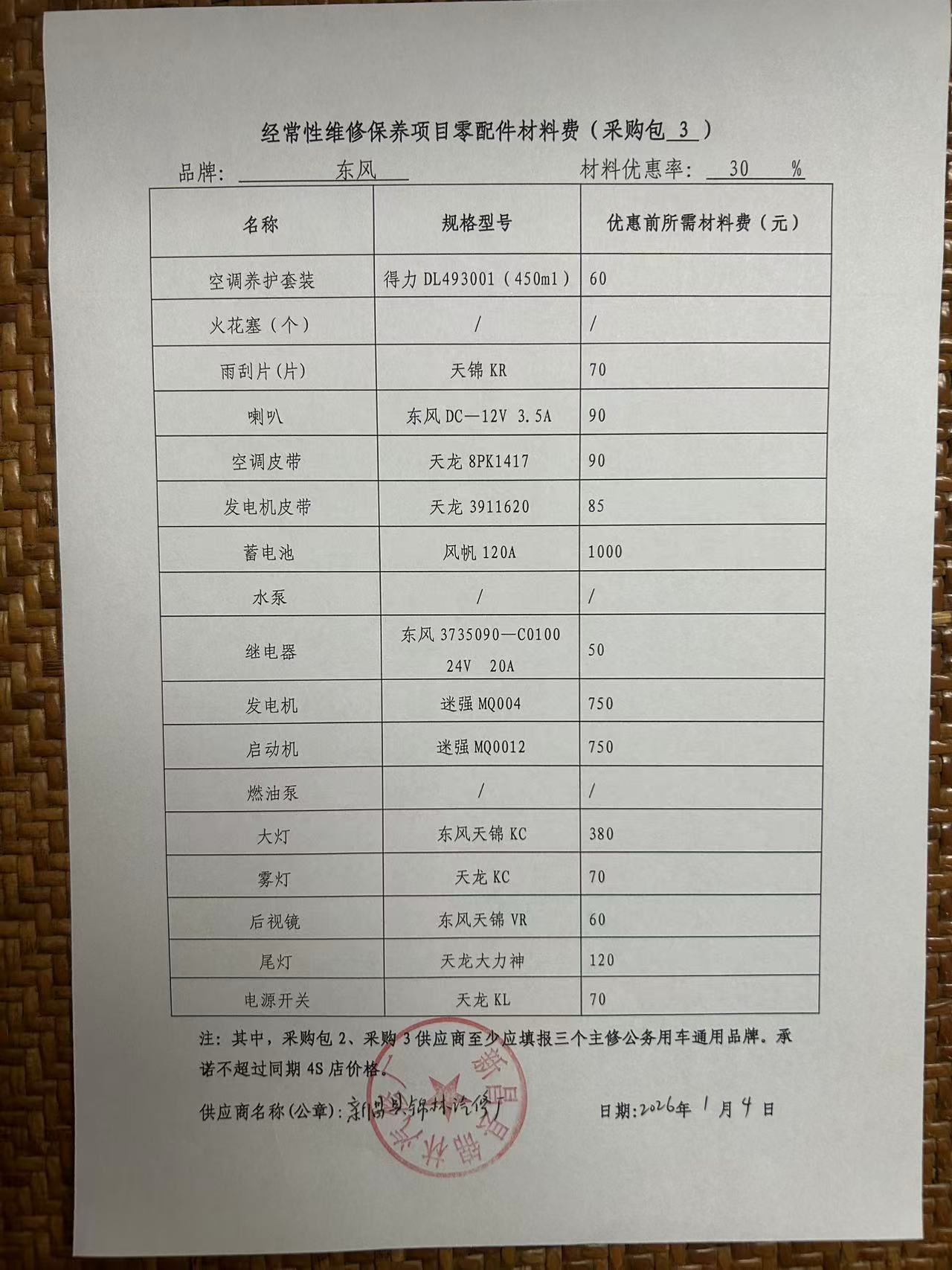 经常性维修保养项目零配件材料费:微信图片*******************.***