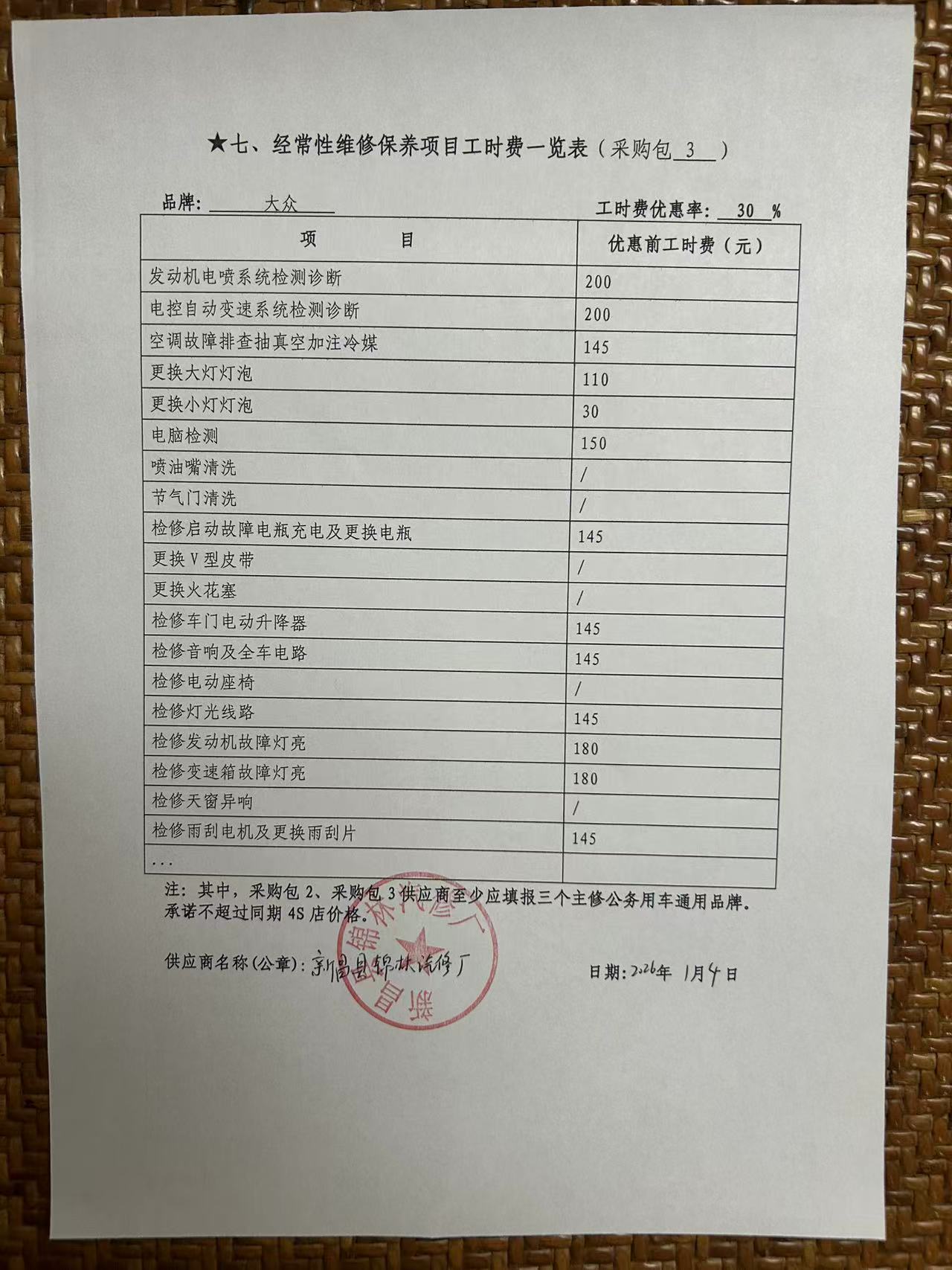 服务方案:工时费、材料费优惠**%