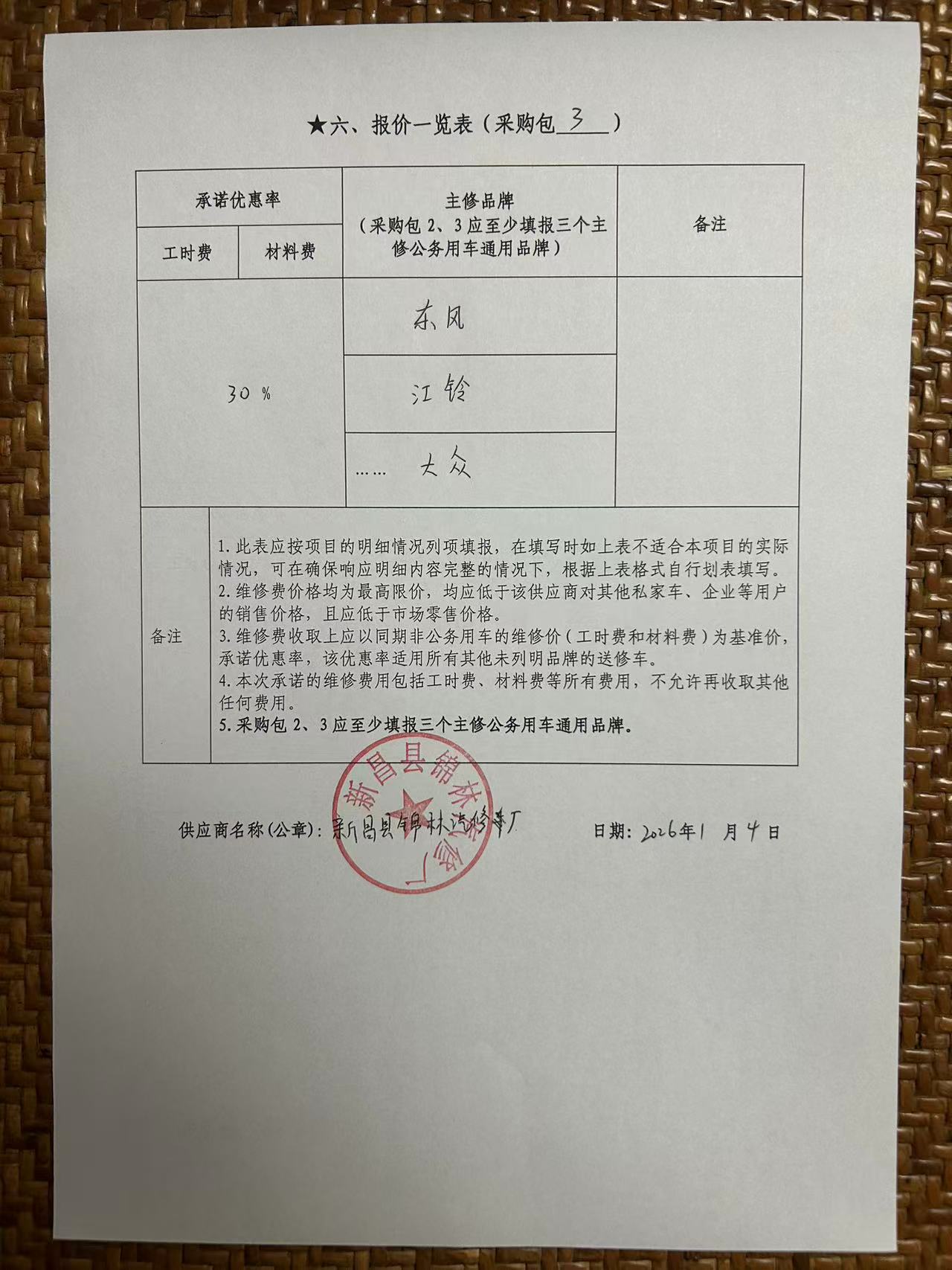 供应商名称:新昌县锦林汽修厂