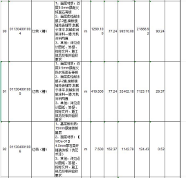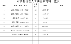 《可调整价差人工和主要材料一览表》中: