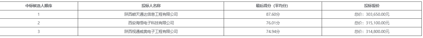 | 陕西顺天通达信息工程有限公司 | 陕西省西安市雁塔区朱雀南路****号南飞鸿广场*号楼**层****室 | 综合评分法 | 否 | ***,***.**元 | **.** |
