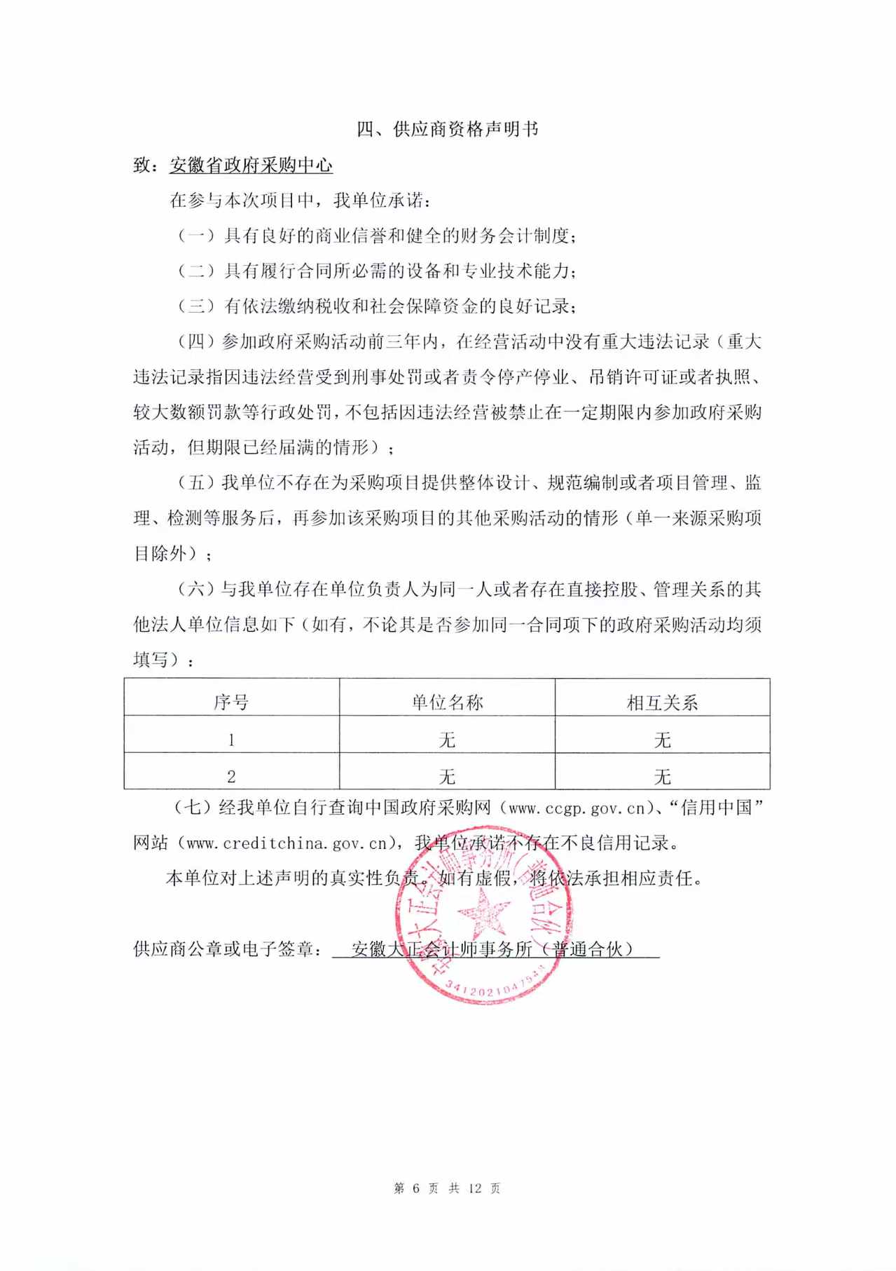 供应商名称:安徽大正会计师事务所(普通合伙)