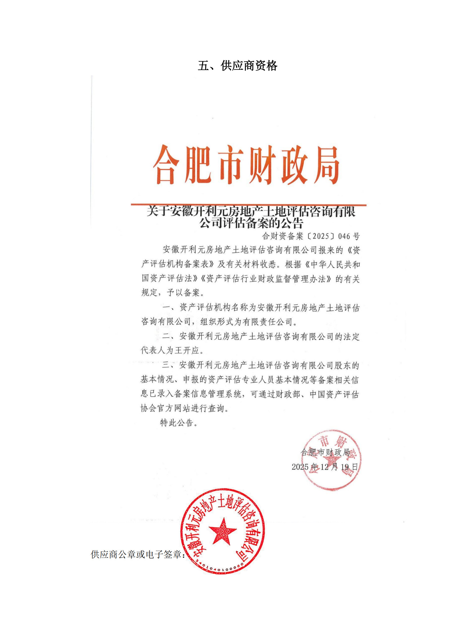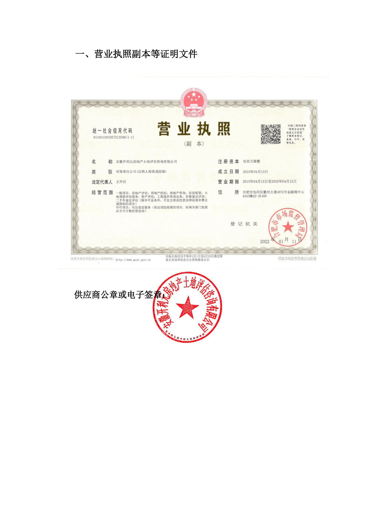 供应商名称:安徽开利元房地产土地评估咨询有限公司