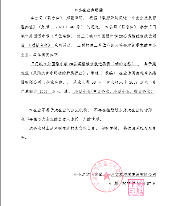 三门峡市外国语中学2#公寓楼维修改造项目-成交公告