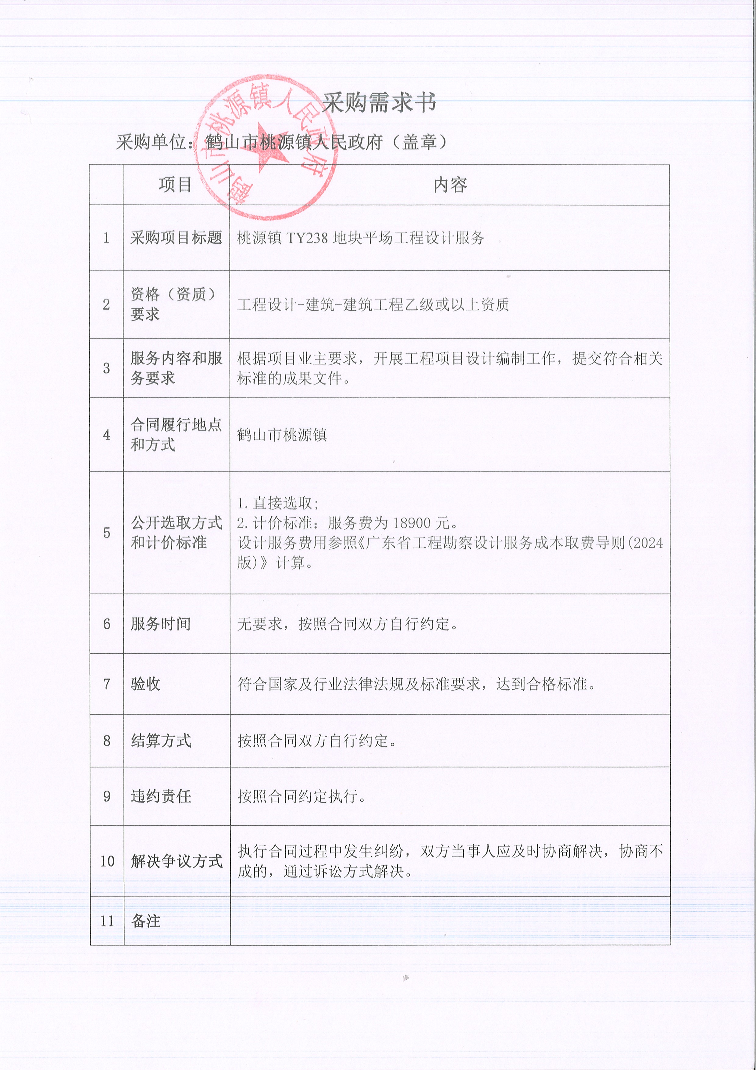 桃源镇TY238地块平场工程设计服务采购公告