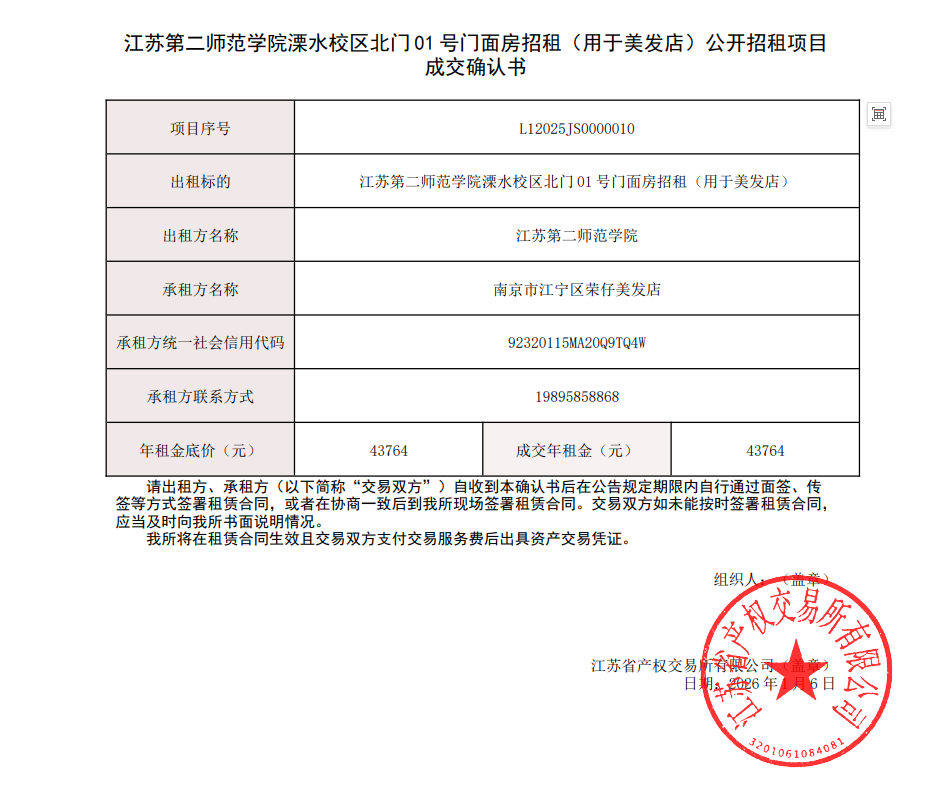 JSSNU2025111904石湫北门01号美发店成交公告
