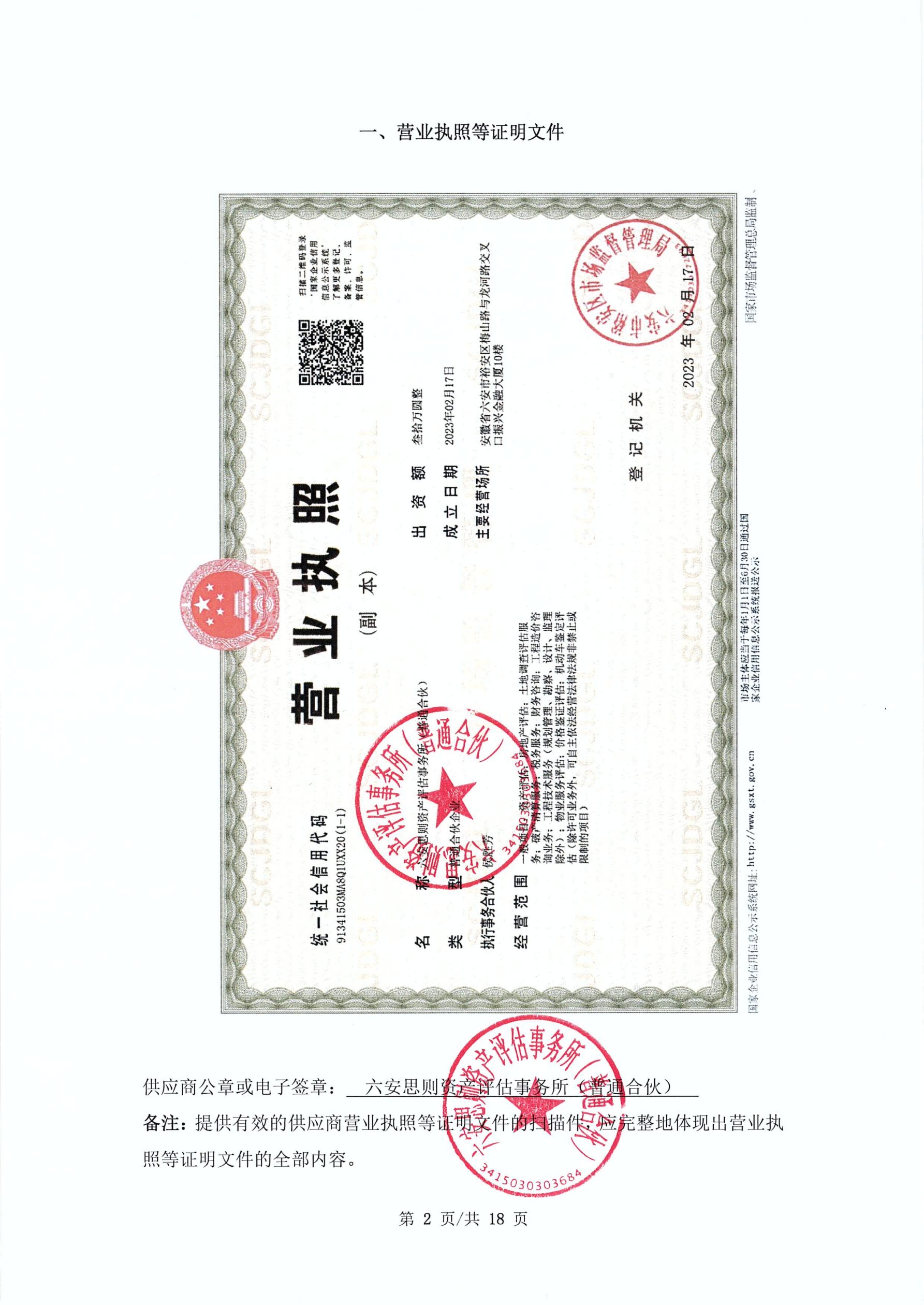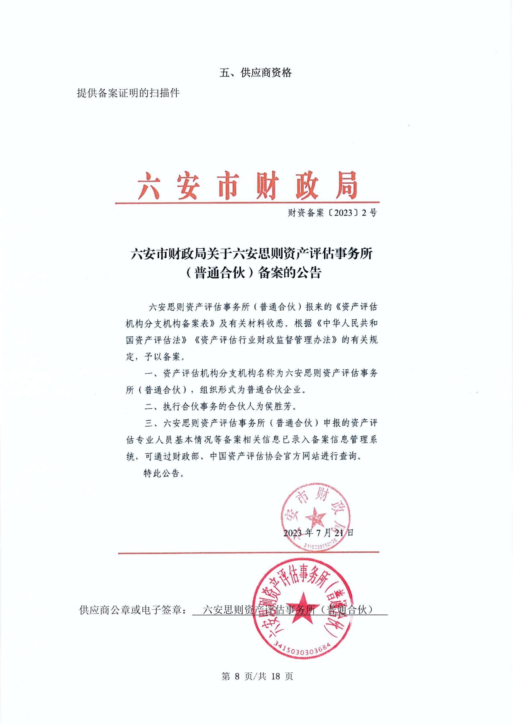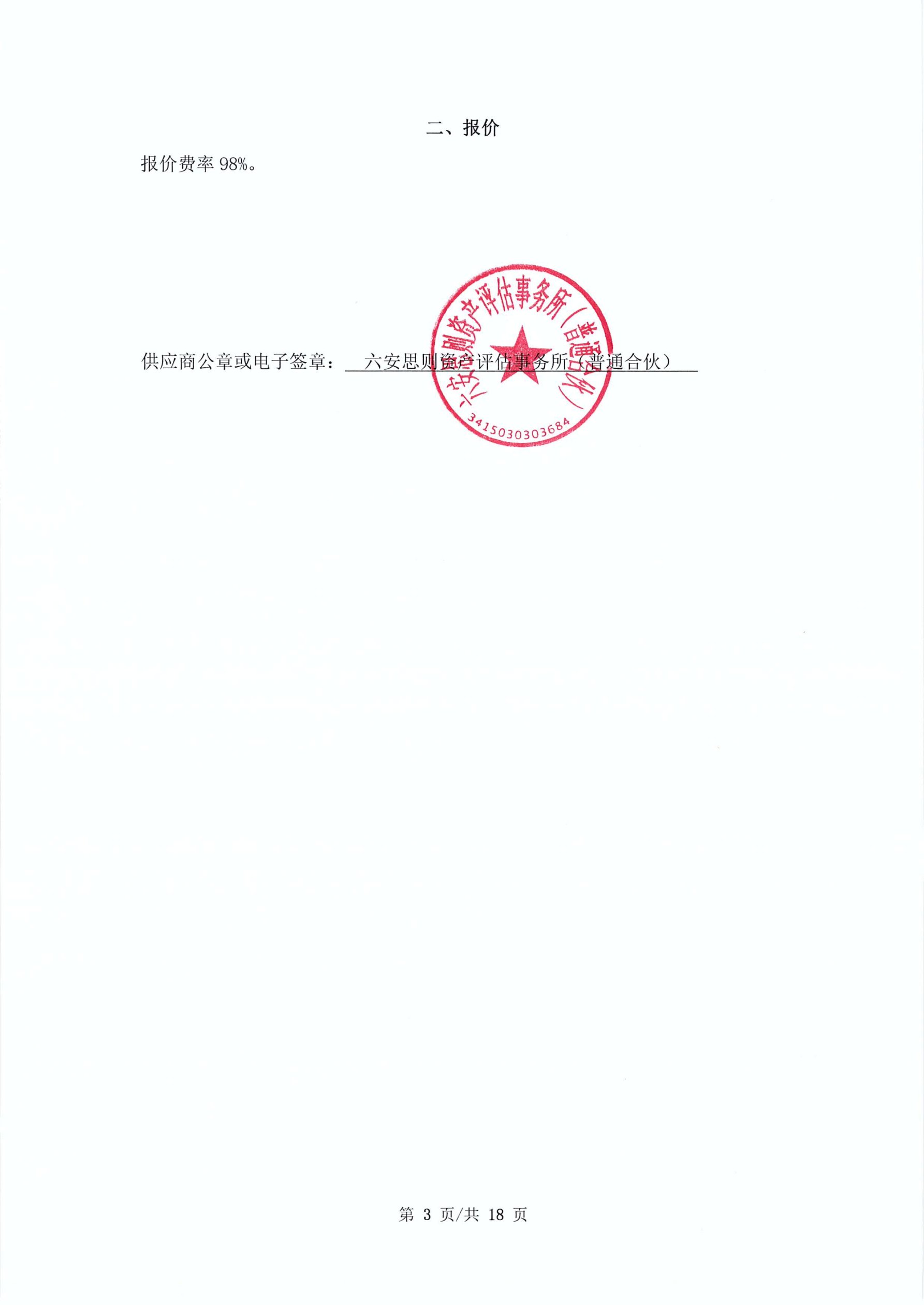 供应商名称:六安思则资产评估事务所(普通合伙)