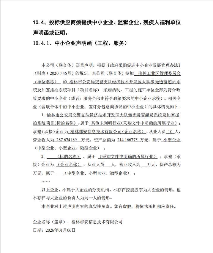 二、项目名称:榆林市公安局交警支队经济技术开发区大队激光透窗超员系统及加塞抓拍系统项目