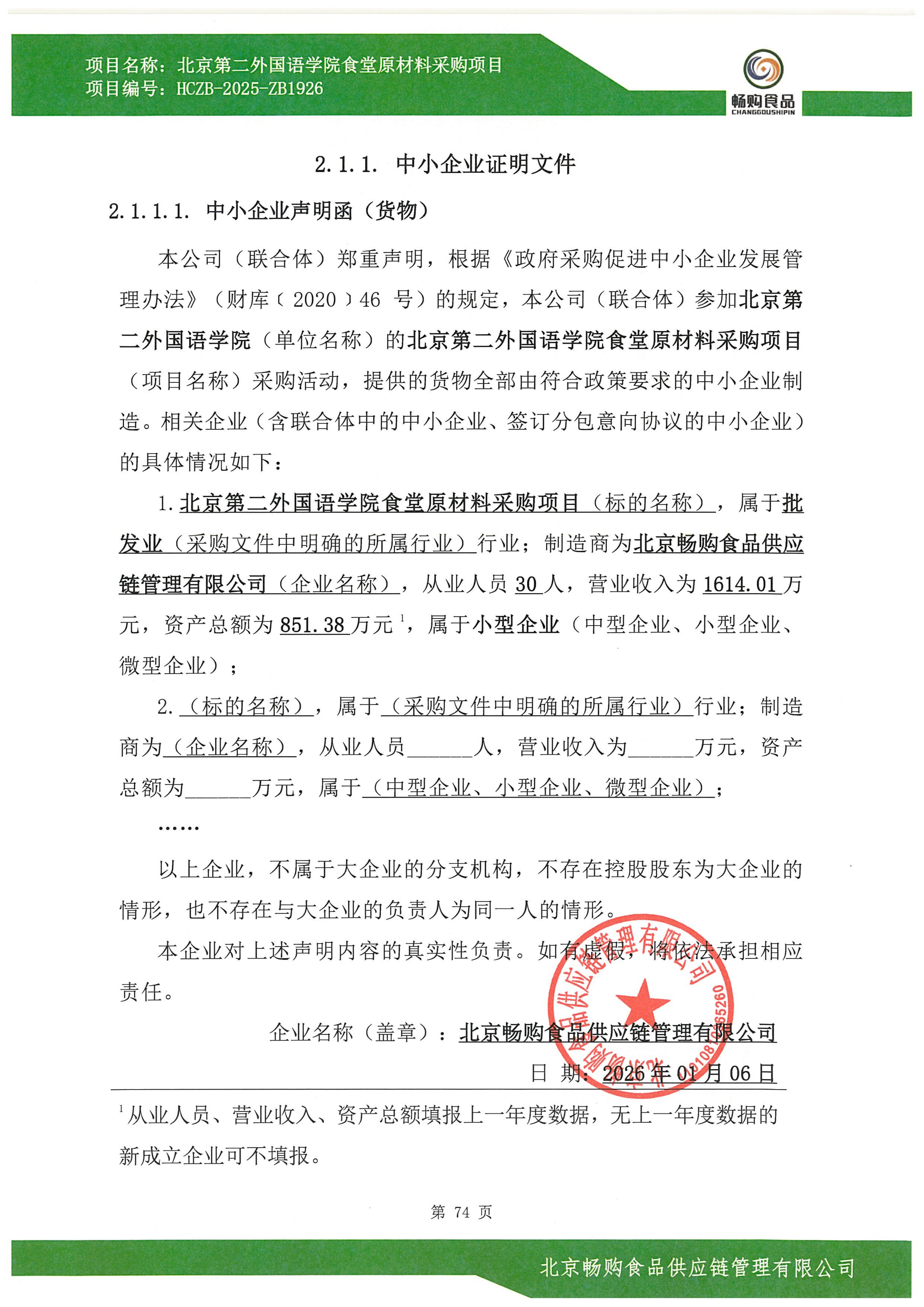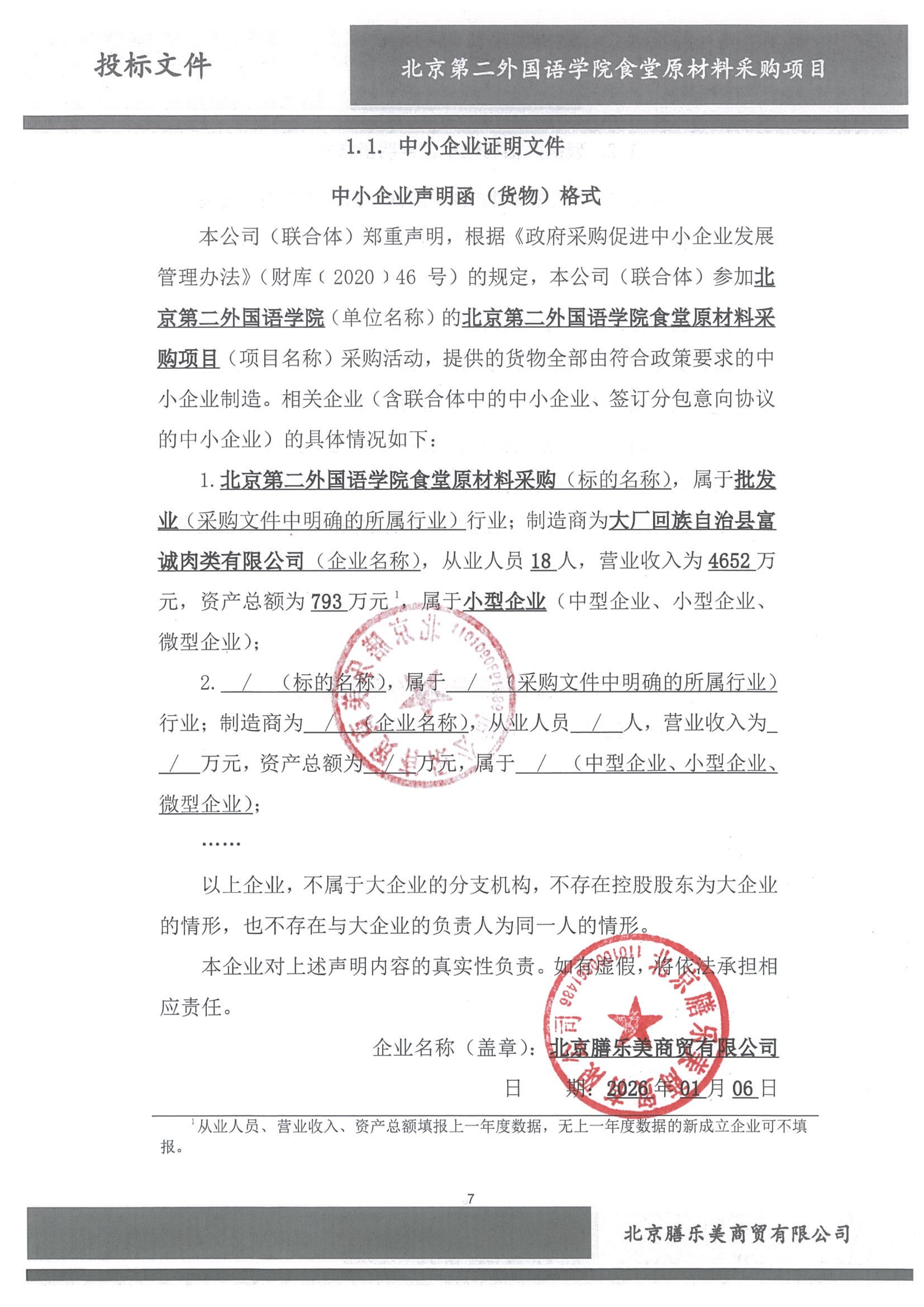 第*包*北京膳乐美商贸有限公司*中小企业声明函***.***