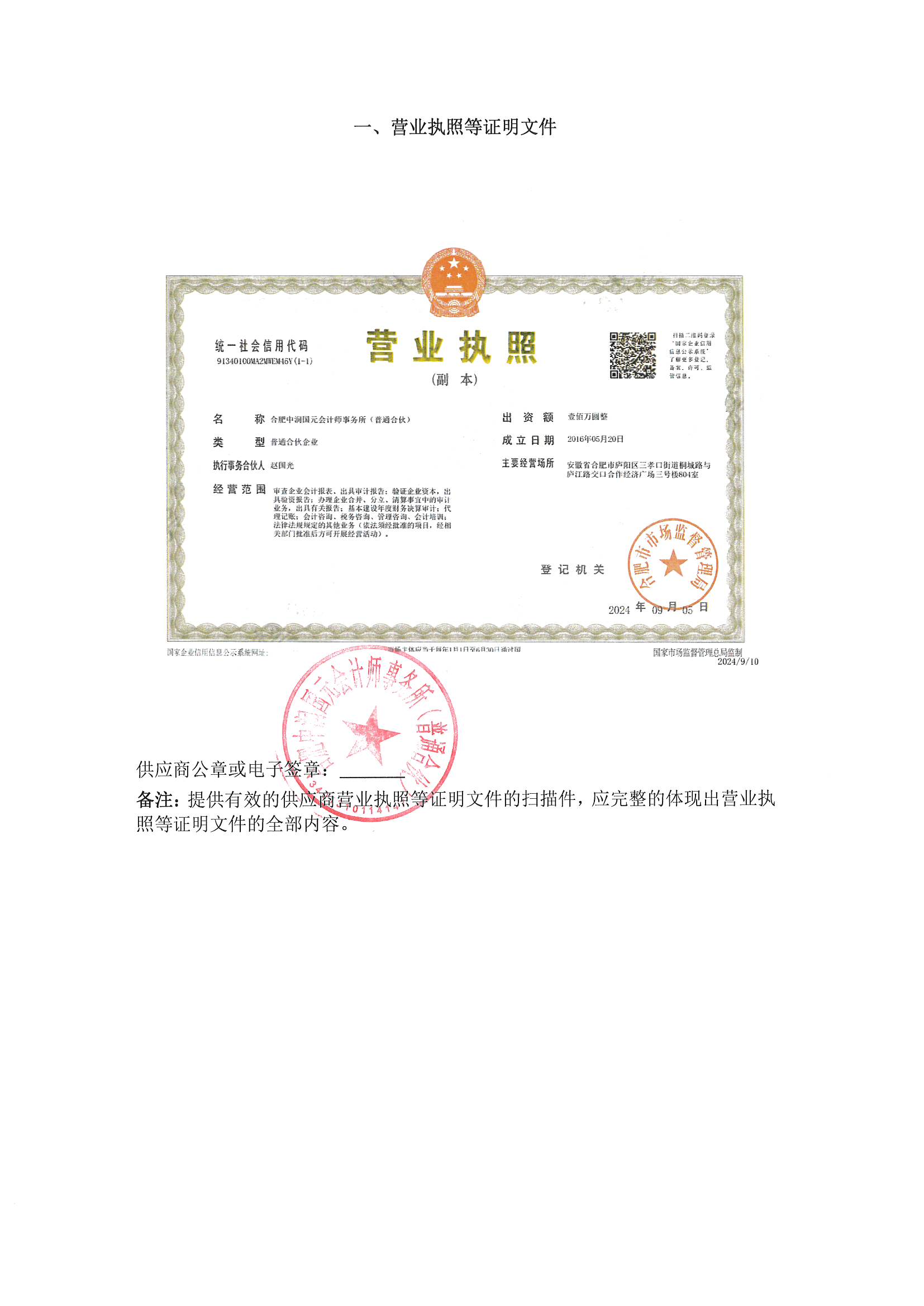 供应商名称:合肥中润国元会计师事务所(普通合伙)